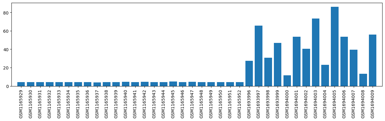 | GSM1693997 | Peripheral blood mononuclear cells from NORA before therapy, replicate 2 | strain/background: Wistar gender: female cell type: peripheral blood mononuclear cells subject group: healthy rats before therapy | 65.67589690499999 |