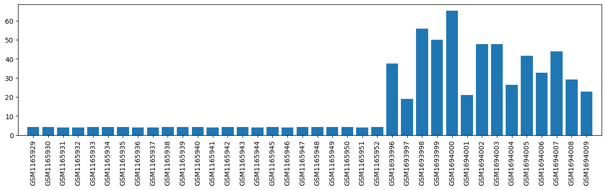 | GSM1693999 | Peripheral blood mononuclear cells from RA before therapy, replicate 1 | strain/background: Wistar gender: female cell type: peripheral blood mononuclear cells subject group: rheumatoid arthritis rats before therapy | 49.91566532666667 |