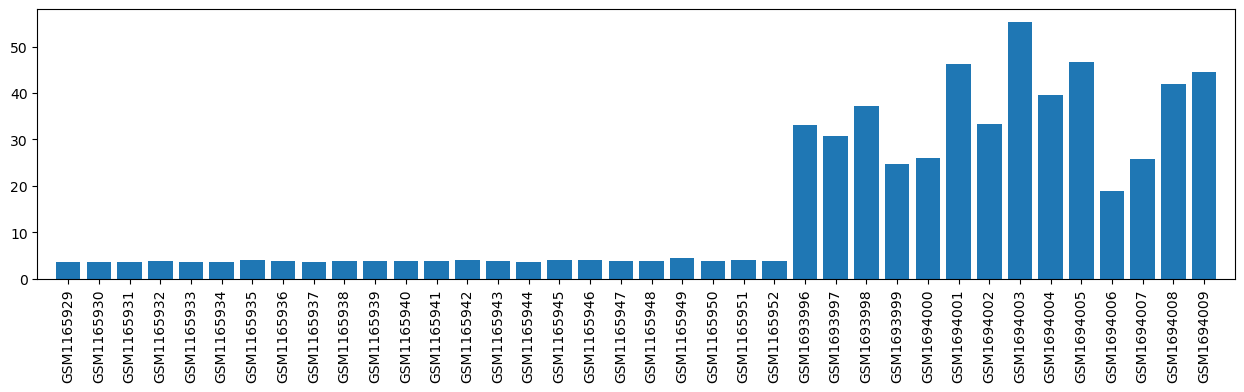 | GSM1165948 | RAT_MTX_34d_2 | gender: Female tissue: RAT Peripheral blood mononuclear cells strain: Wistar rat subject group: RA rats after 34 days MTX therapy | 3.7639565053333333 |