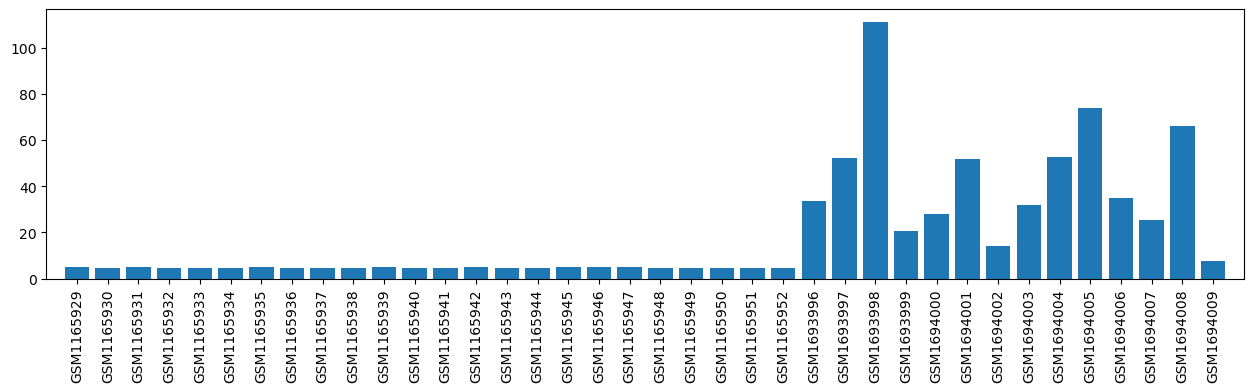 | GSM1693996 | Peripheral blood mononuclear cells from NORA before therapy, replicate 1 | strain/background: Wistar gender: female cell type: peripheral blood mononuclear cells subject group: healthy rats before therap | 33.750039655 |