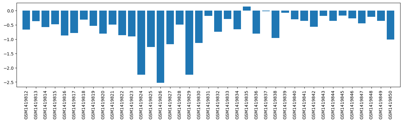 | GSM1419839 | 2Hz_NR_24h_PAG4 rat | strain: Sprague-Dawley tissue: PAG treatment: 2Hz electroacupuncture responder type: low responder(NR) time: 24h;strain: Sprague-Dawley treatment: control tissue: PAG | -0.082703157 |