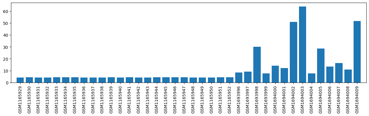 | GSM1694000 | Peripheral blood mononuclear cells from RA before therapy, replicate 2 | strain/background: Wistar gender: female cell type: peripheral blood mononuclear cells subject group: rheumatoid arthritis rats before therapy | 14.15664858 |