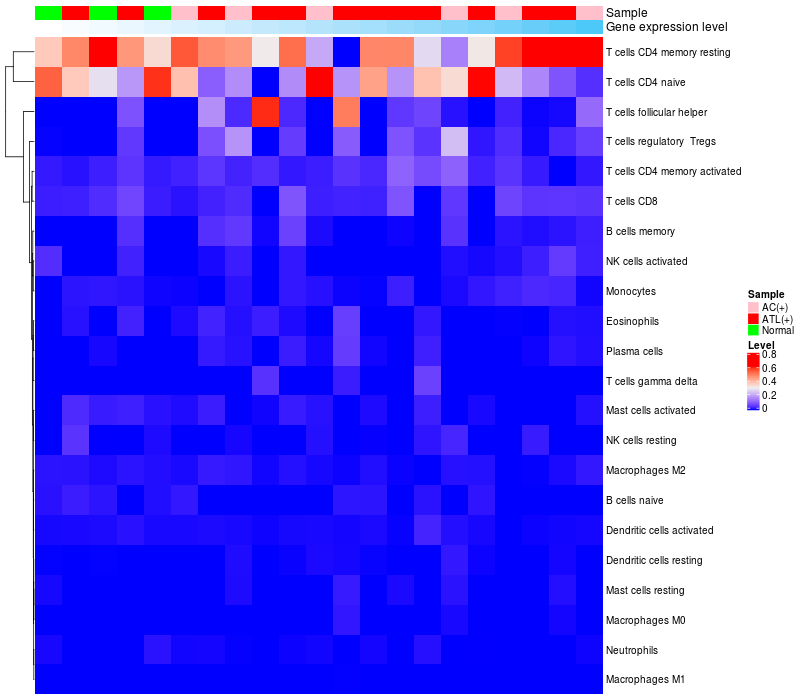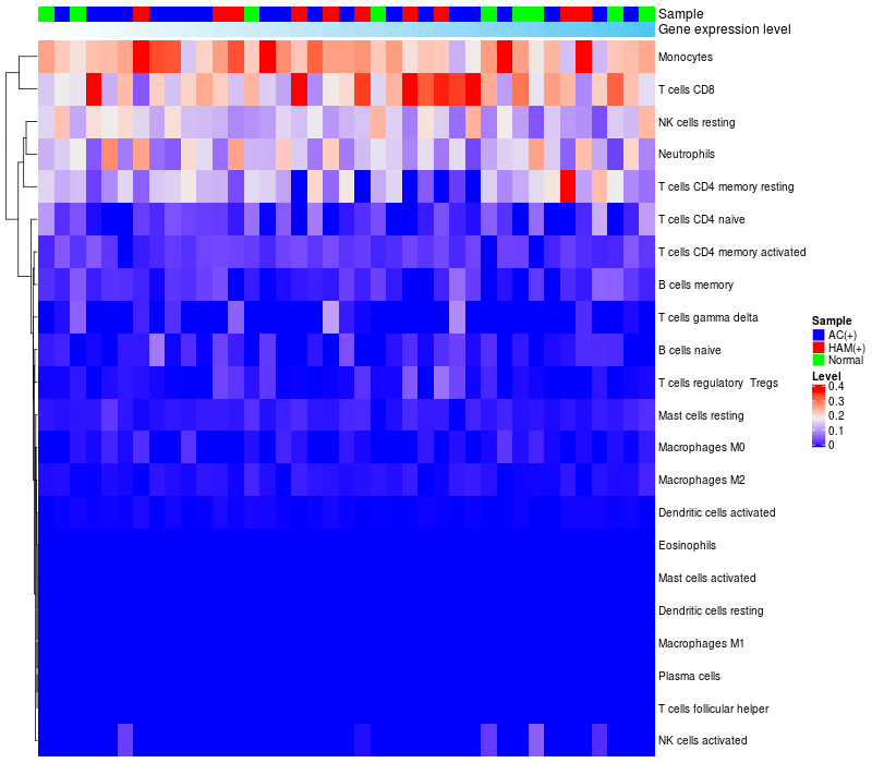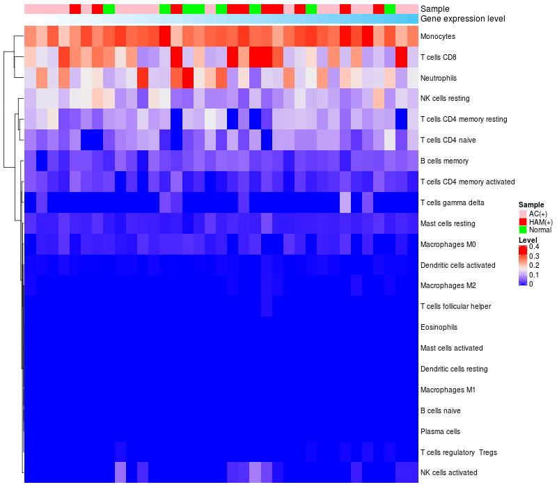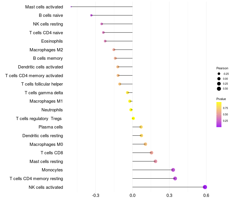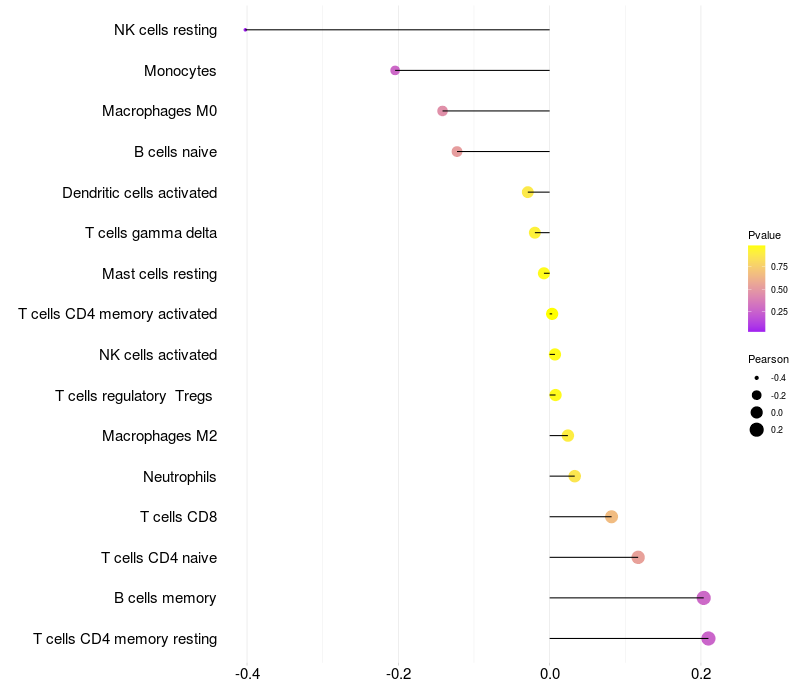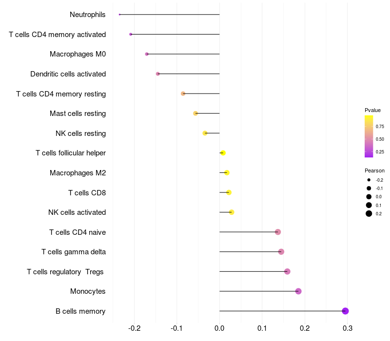 Relationship between gene expression and immune infiltrating cell level
