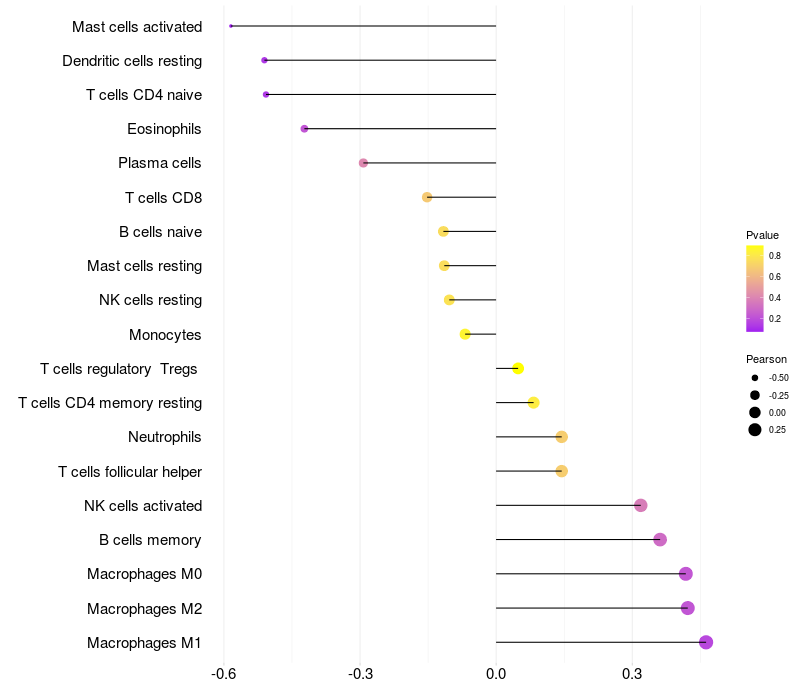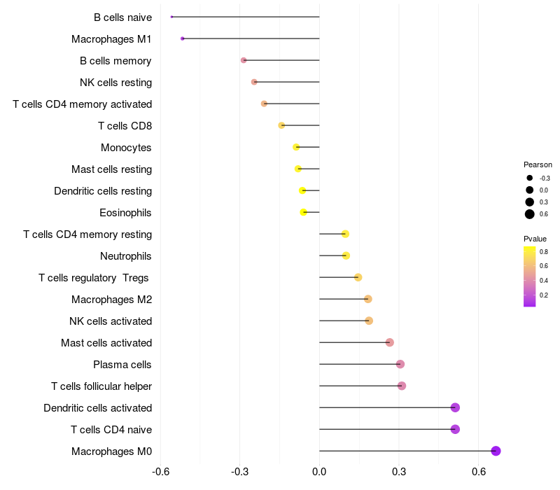 Lollipop of AAK1 expression and immune infiltrating cell level correlation result in HBV+ Liver cirrhosis samples