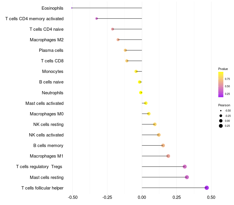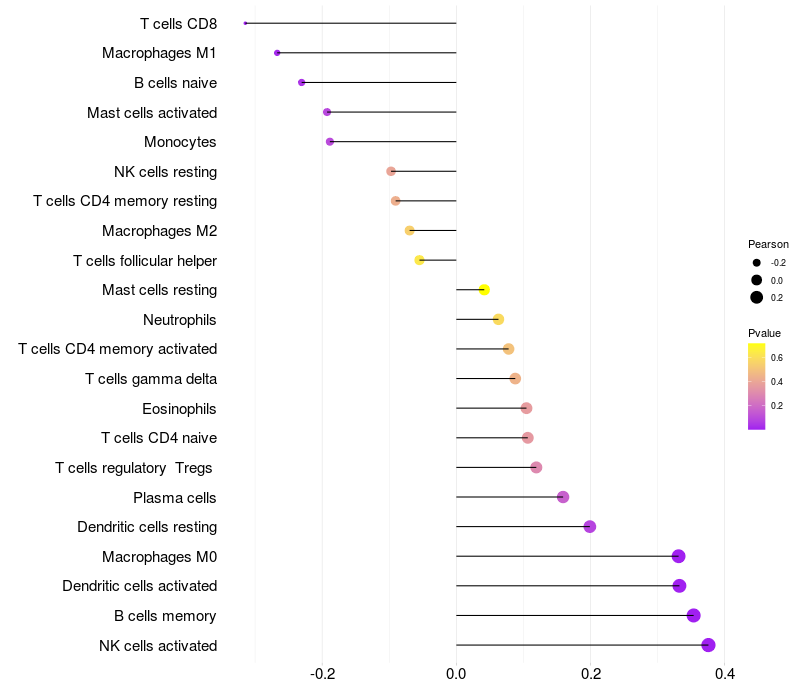 Lollipop of AAK1 expression and immune infiltrating cell level correlation result in HBV+ Chronic HBV (CHB) infection samples
