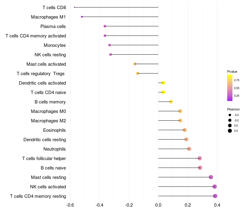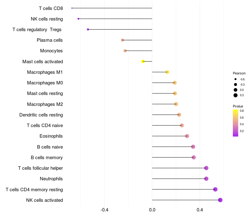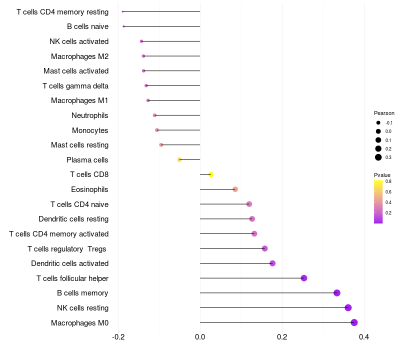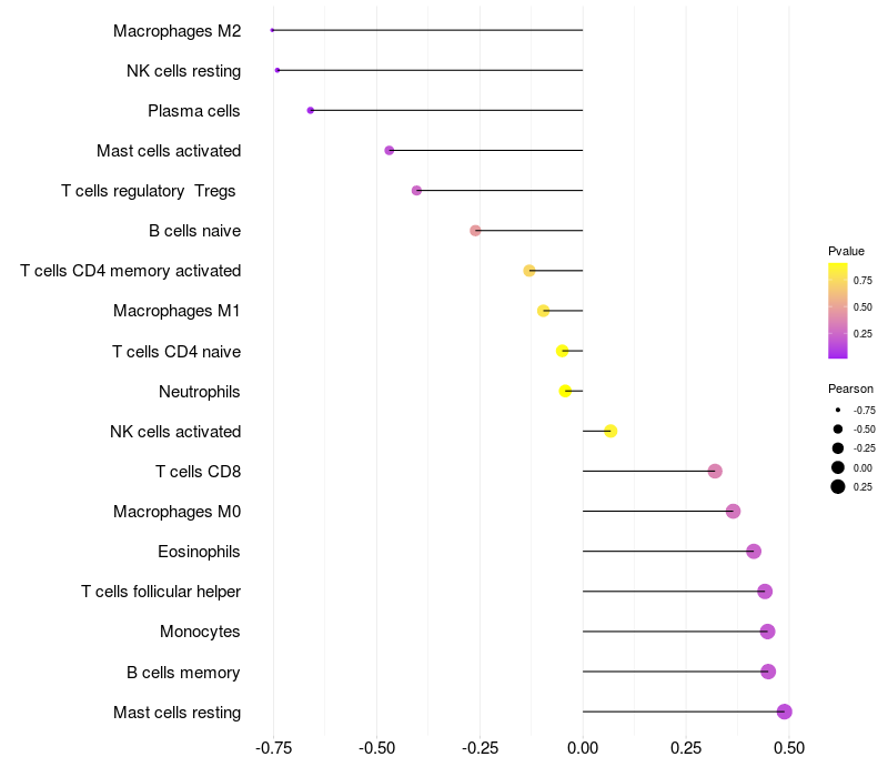 Lollipop of AATF expression and immune infiltrating cell level correlation result in HBV+ Liver cirrhosis samples