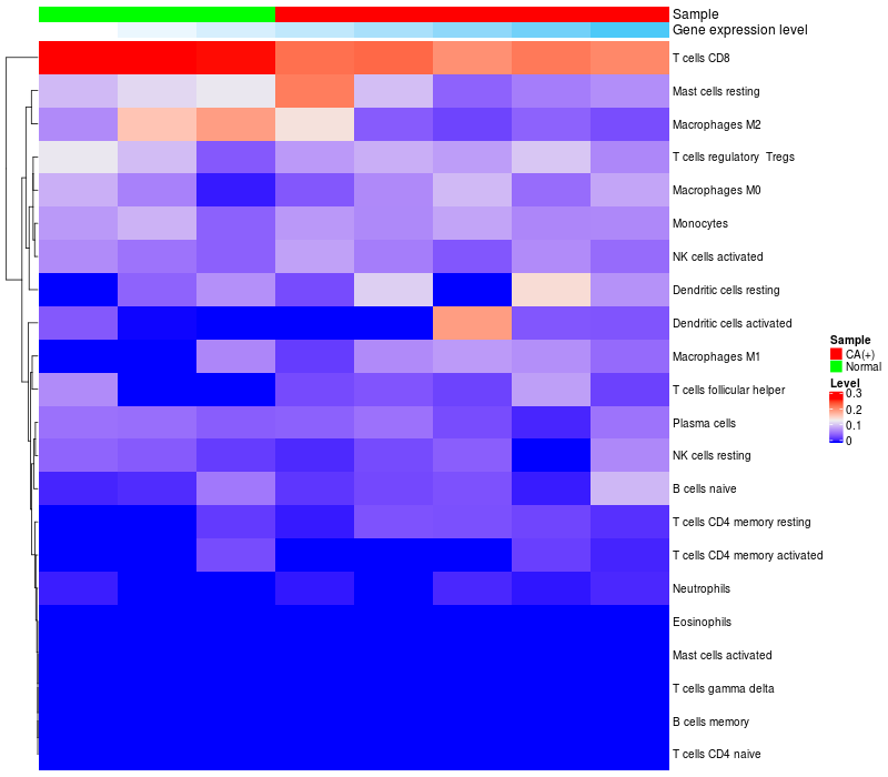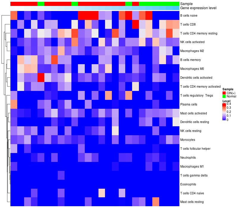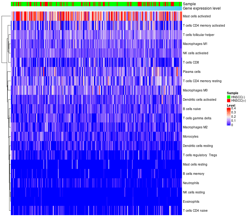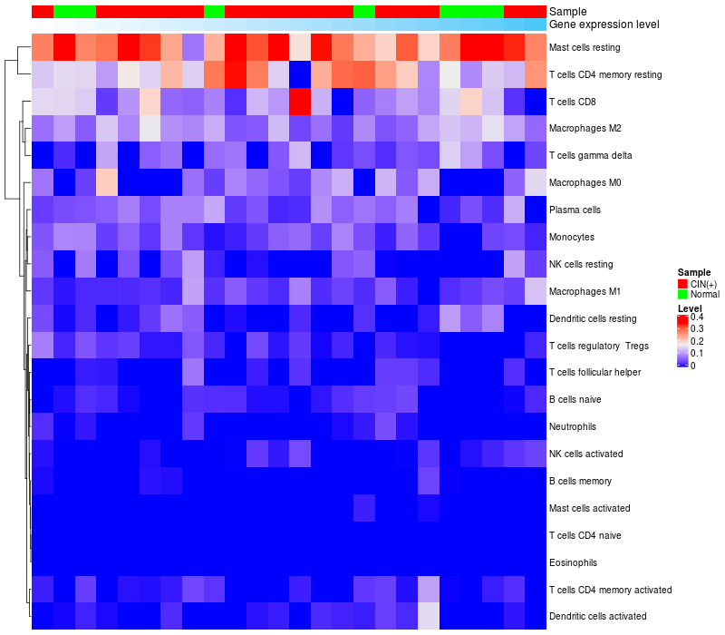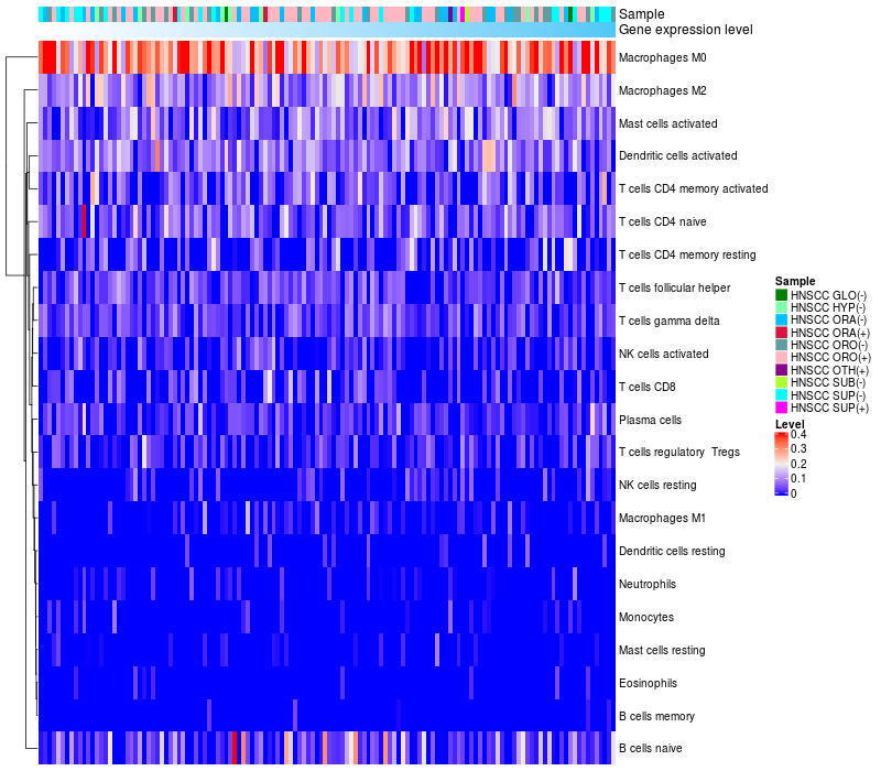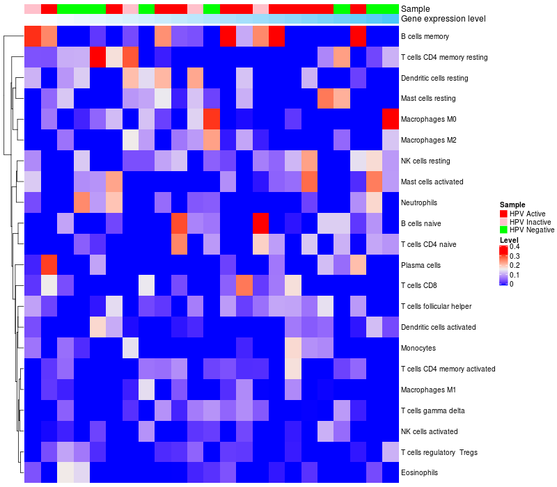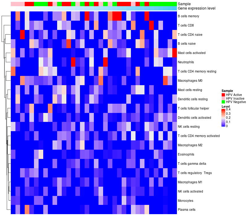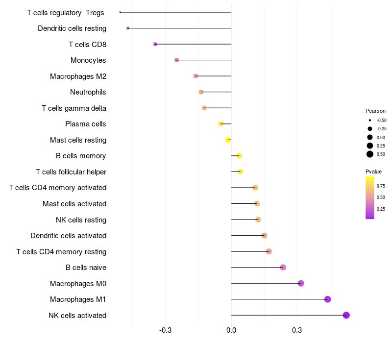 Lollipop of ABHD3 expression and immune infiltrating cell level correlation result in HPV+ samples