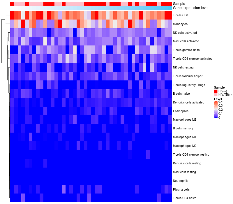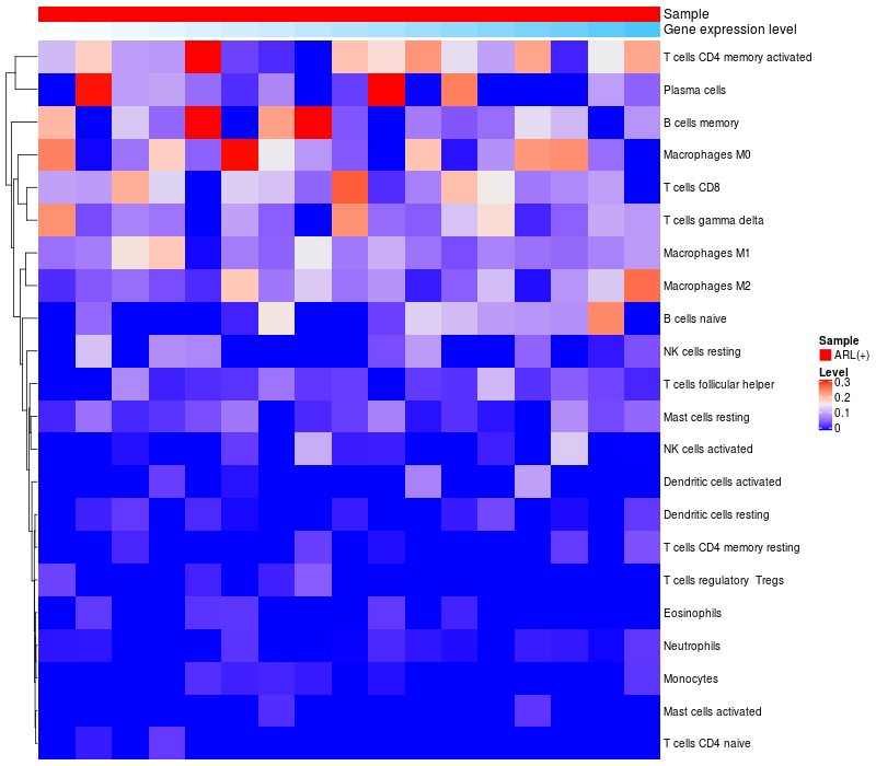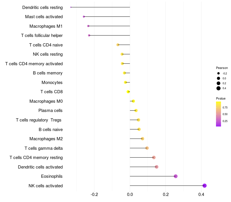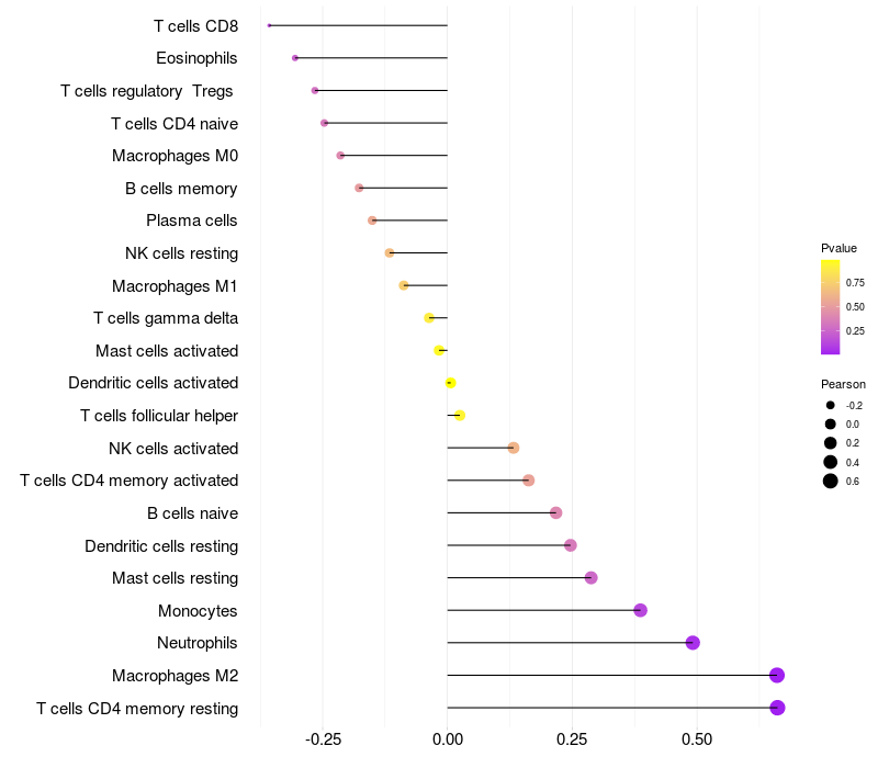 Relationship between gene expression and immune infiltrating cell level