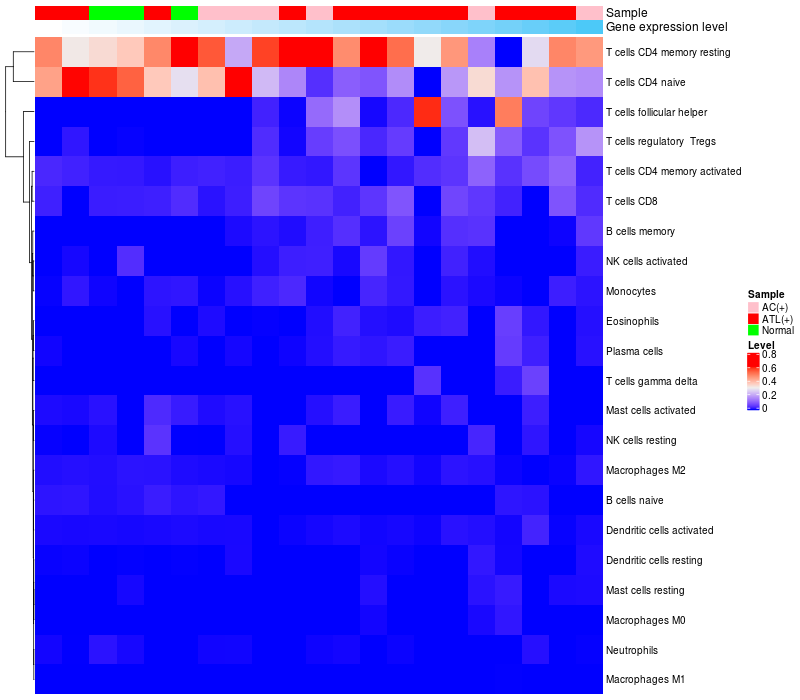 Normal (3), Asymptomatic carriers (HTLV1+)(6), Adult T-cell Leukemia-lymphoma (HTLV1+)(12) |