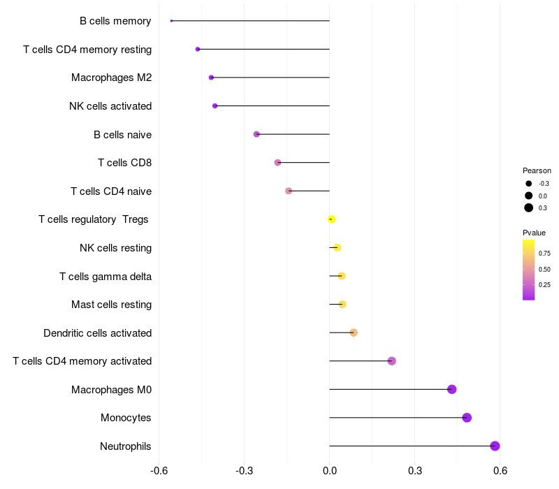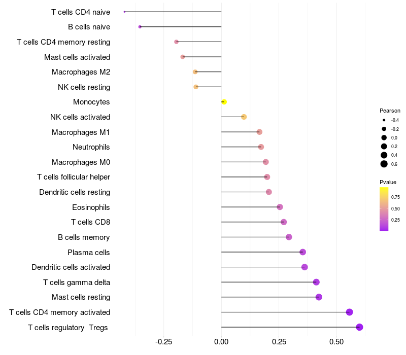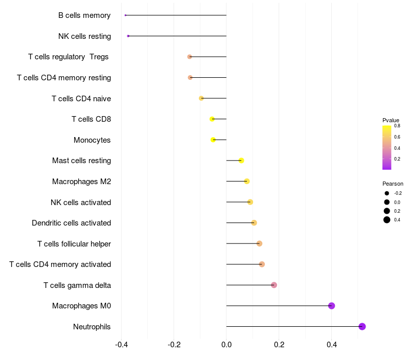 Lollipop of ACSL4 expression and immune infiltrating cell level correlation result in HTLV1+ samples
