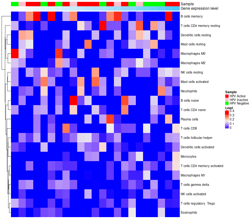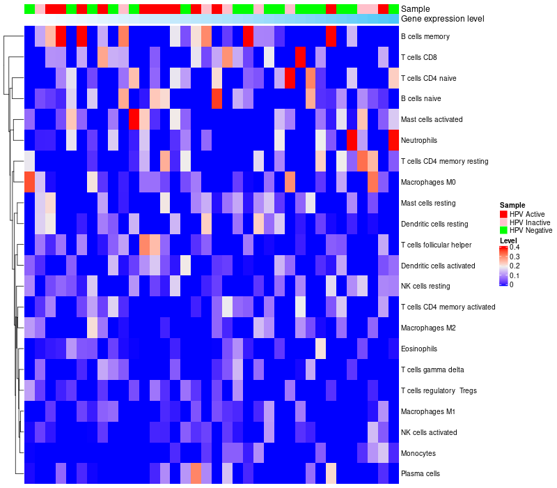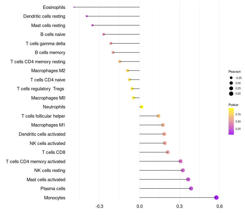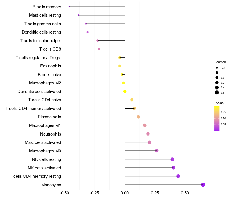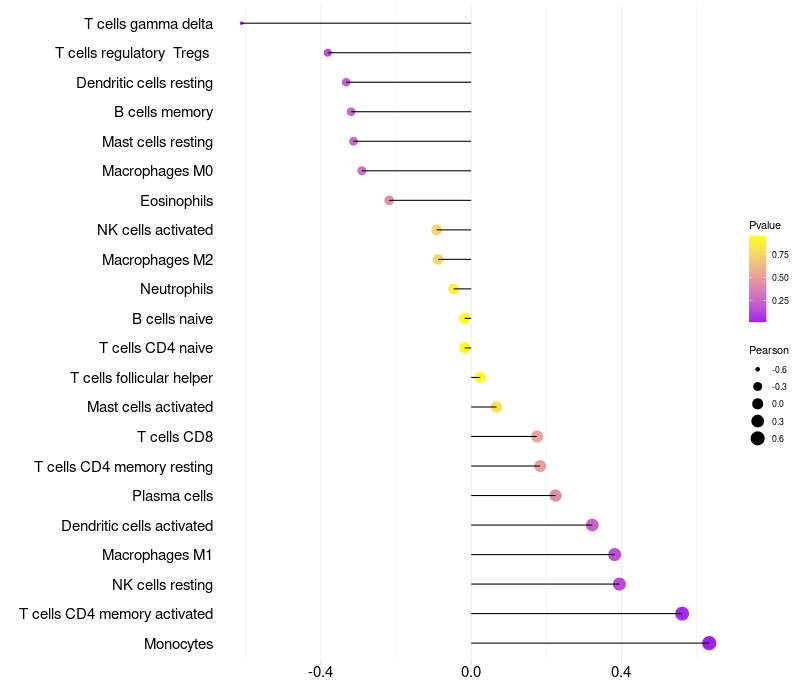 Lollipop of ACTL9 expression and immune infiltrating cell level correlation result in HPV+ samples