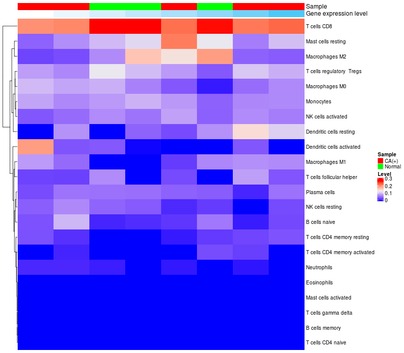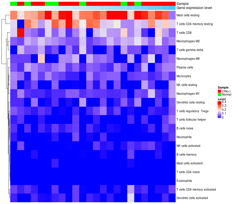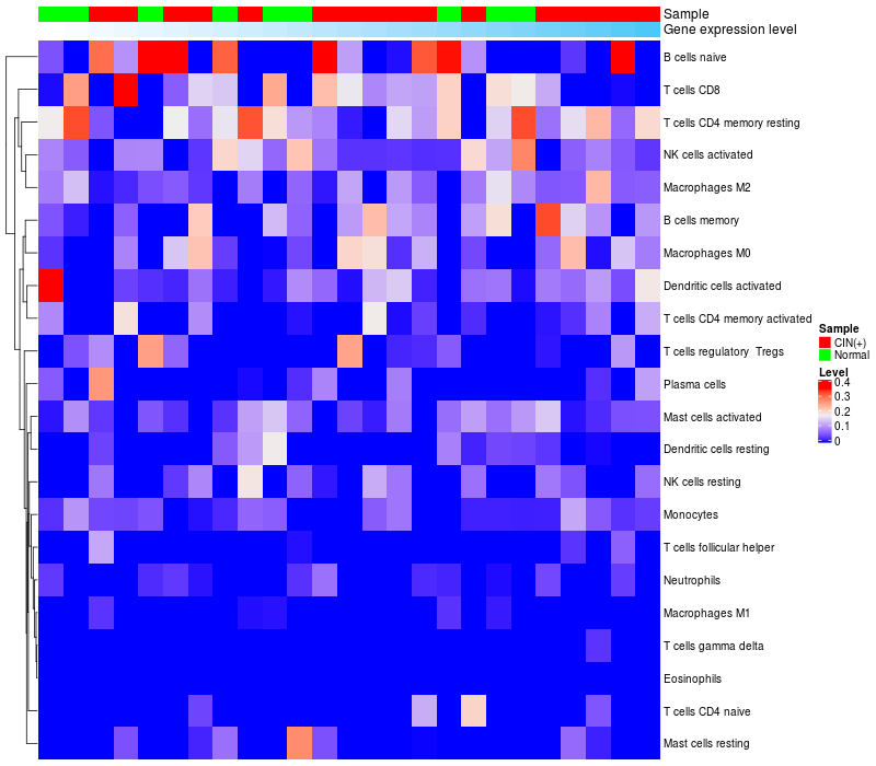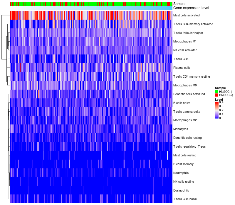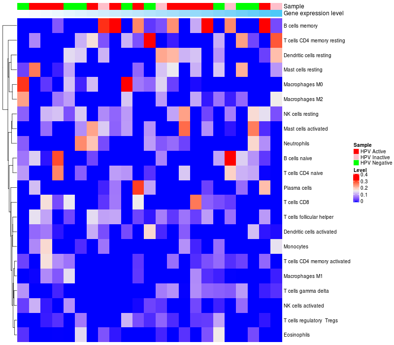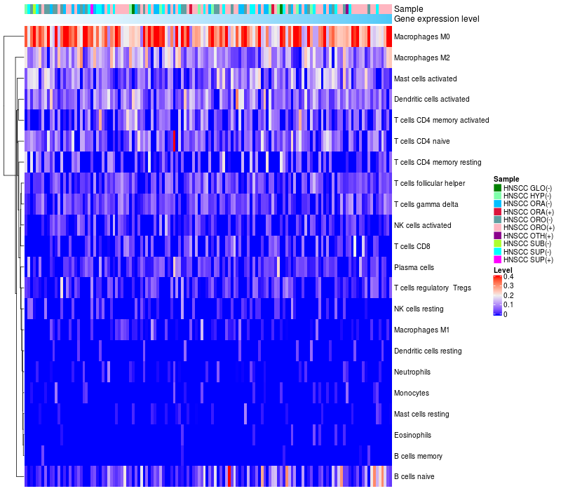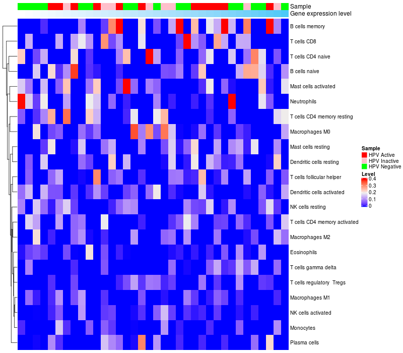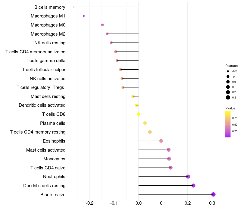 Lollipop of ACYP2 expression and immune infiltrating cell level correlation result in HPV+ samples