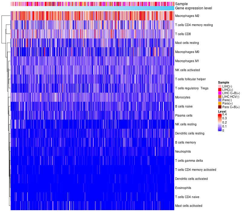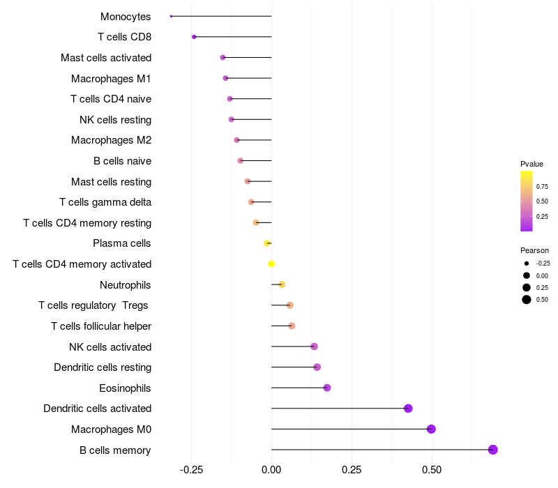 Relationship between gene expression and immune infiltrating cell level
