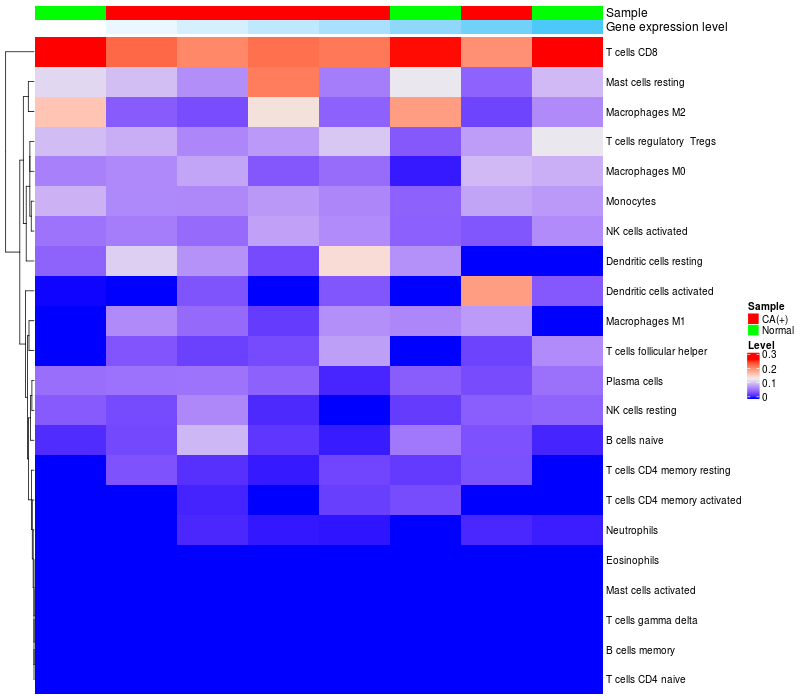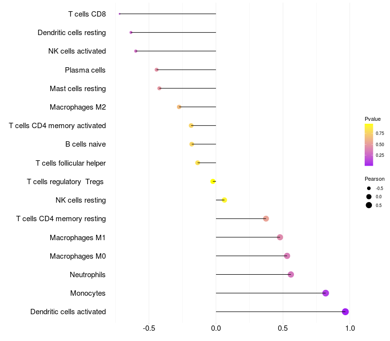 Relationship between gene expression and immune infiltrating cell level