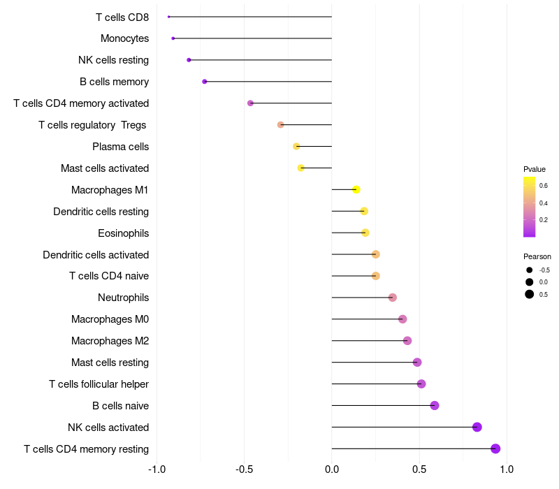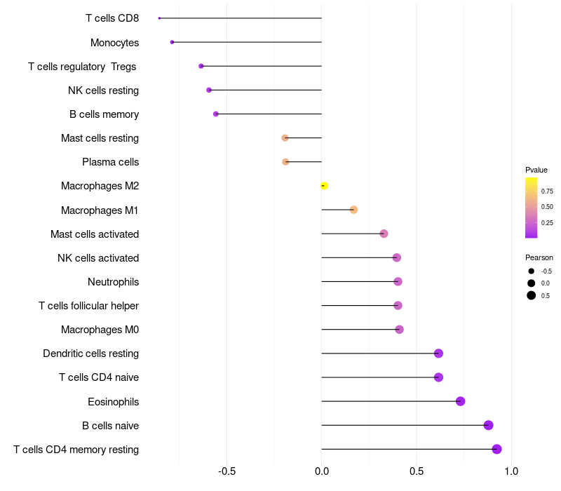 Lollipop of AK1 expression and immune infiltrating cell level correlation result in HBV+ Liver cirrhosis samples