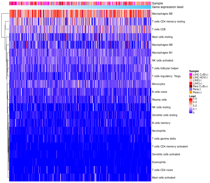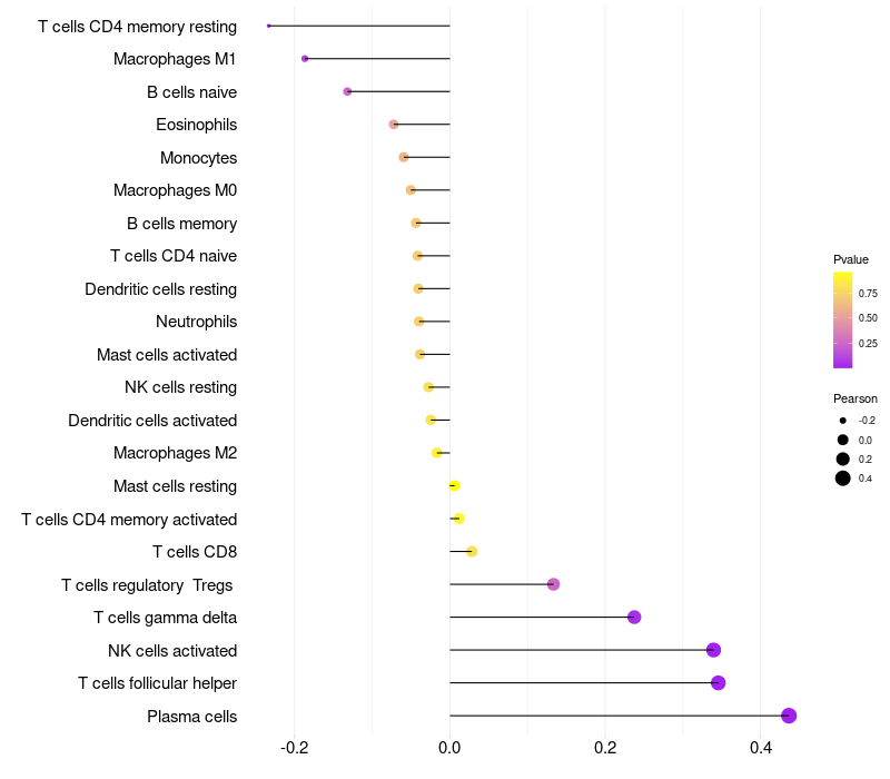 Relationship between gene expression and immune infiltrating cell level