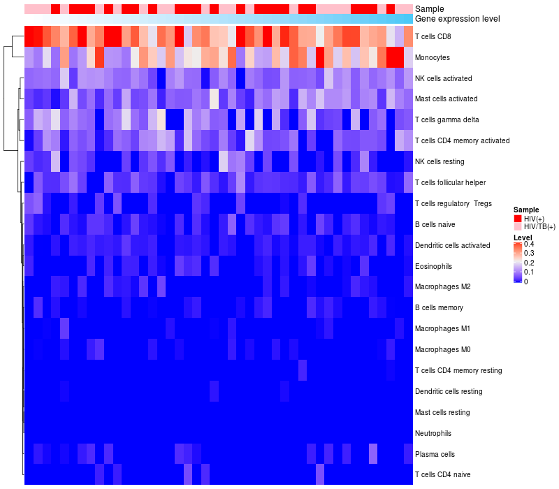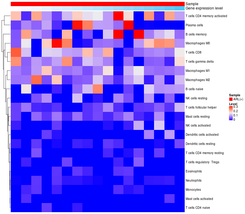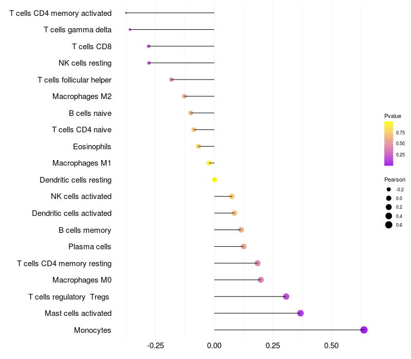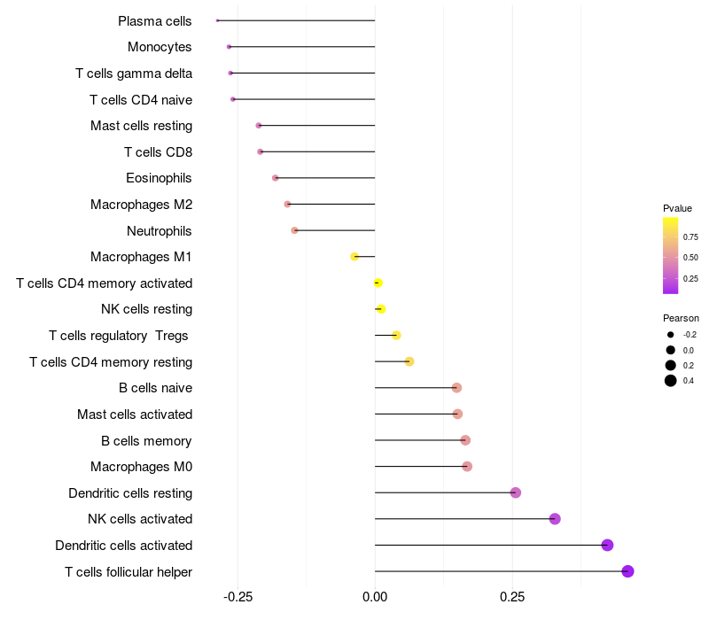Relationship between gene expression and immune infiltrating cell level