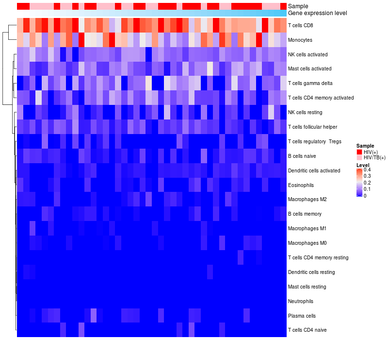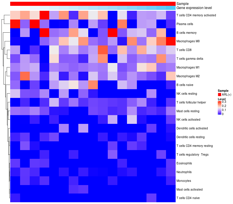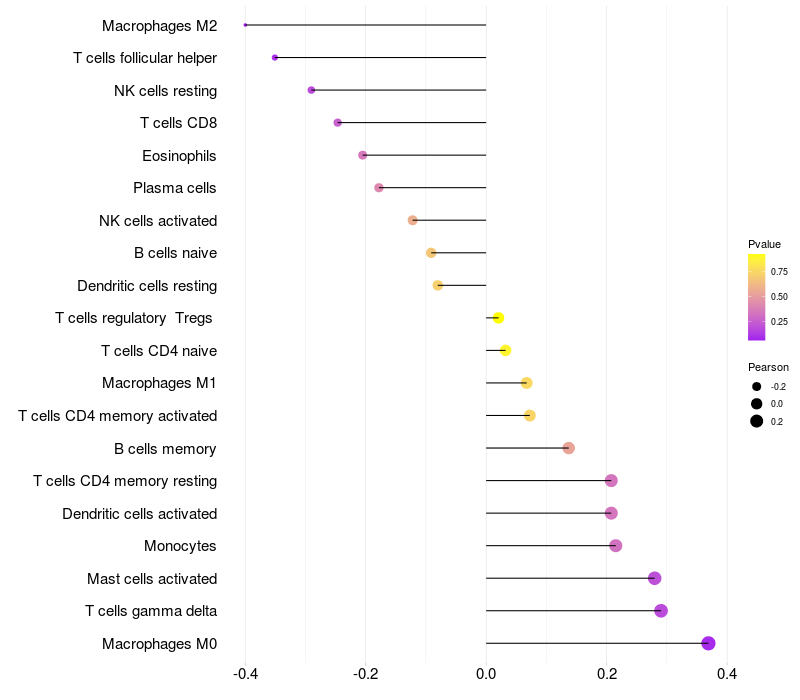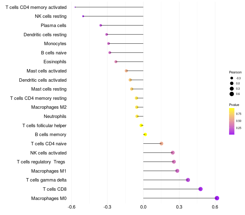 Relationship between gene expression and immune infiltrating cell level