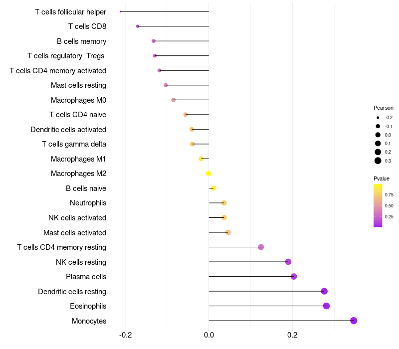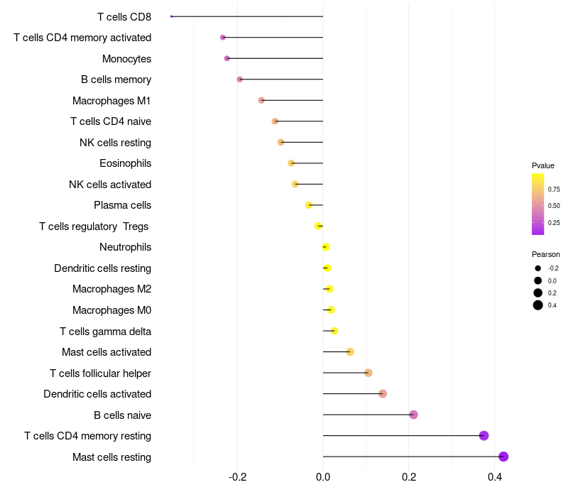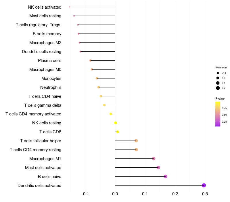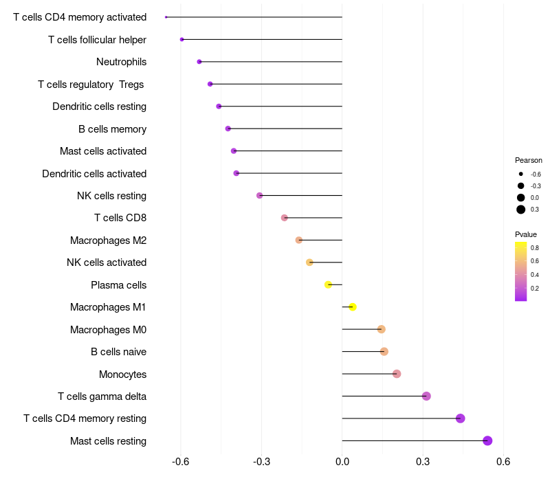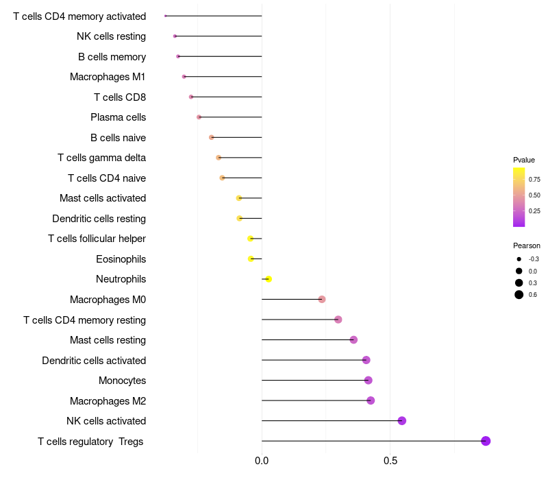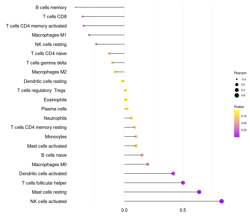 HeatMap of cell type fractions in all samples Lollipop of ALDH1A2 expression and immune infiltrating cell level correlation result in HPV+ samples