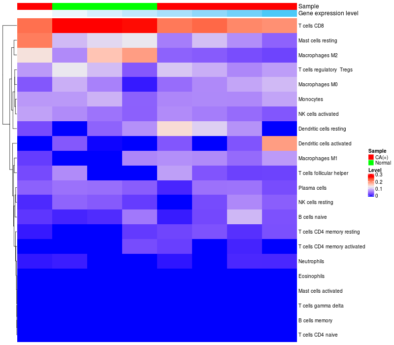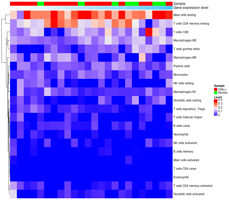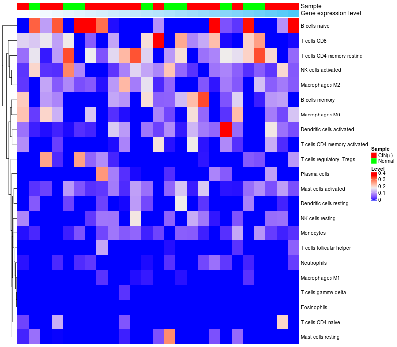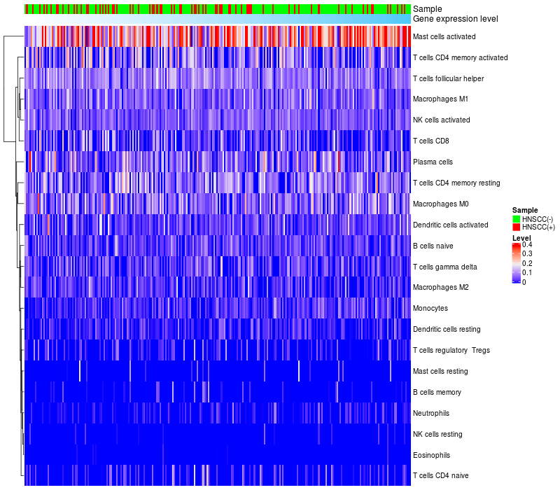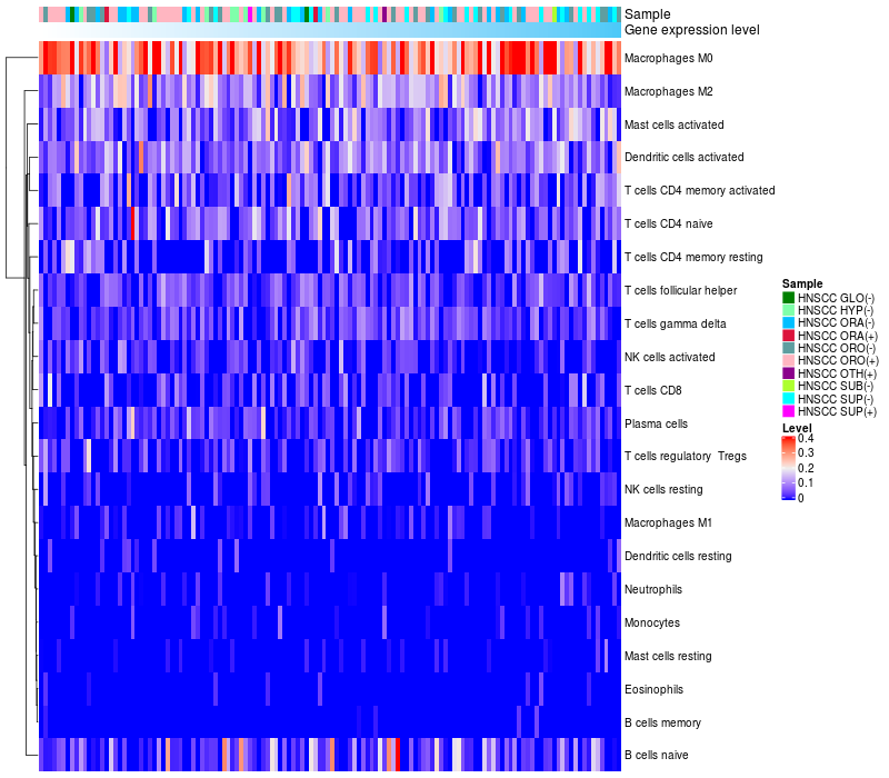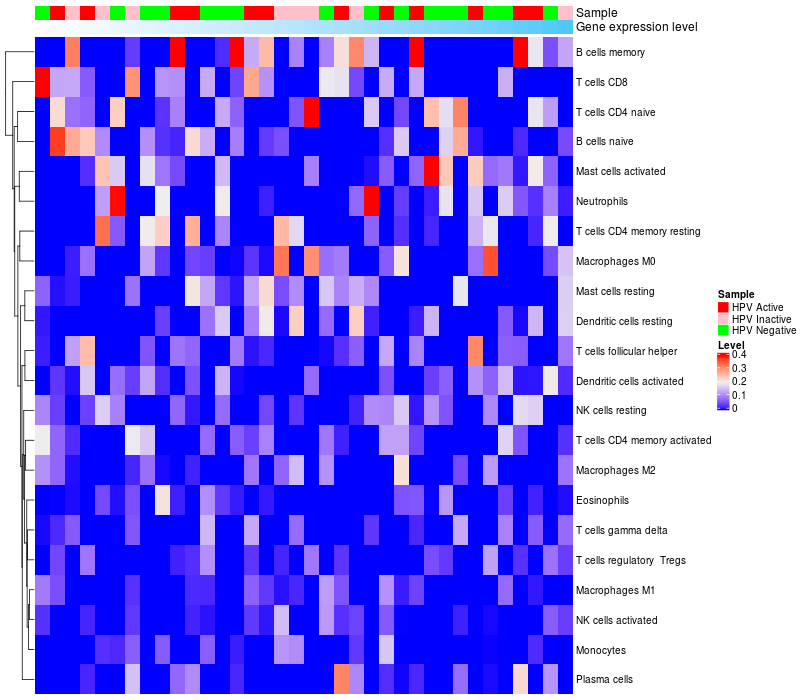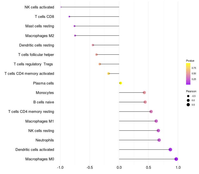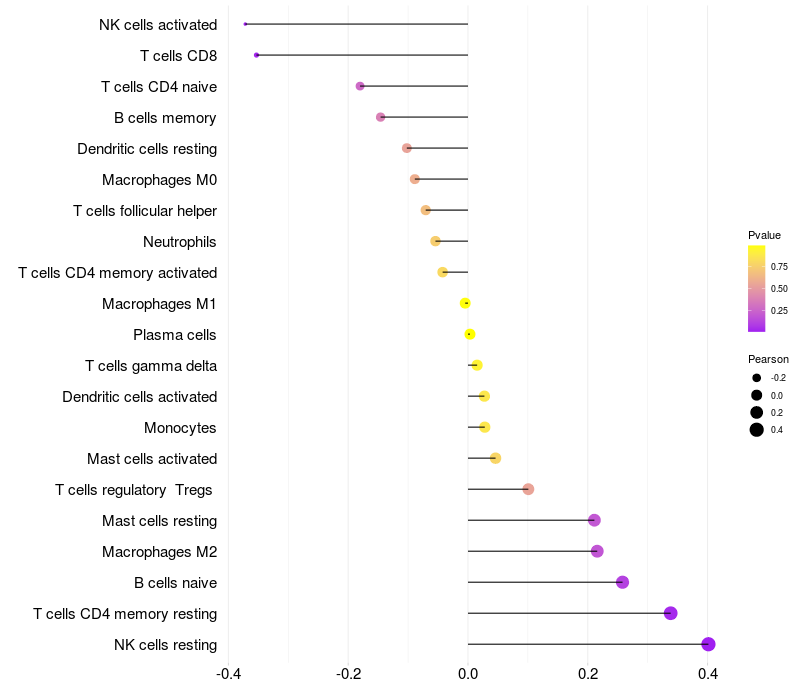 Lollipop of ALDH1A3 expression and immune infiltrating cell level correlation result in HPV+ samples