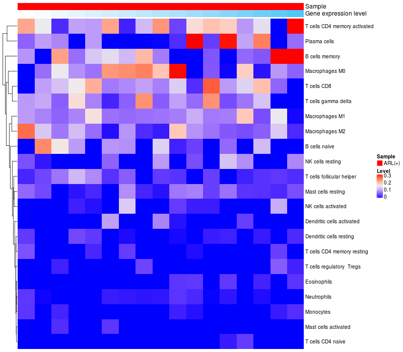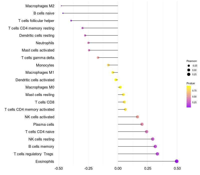 Relationship between gene expression and immune infiltrating cell level