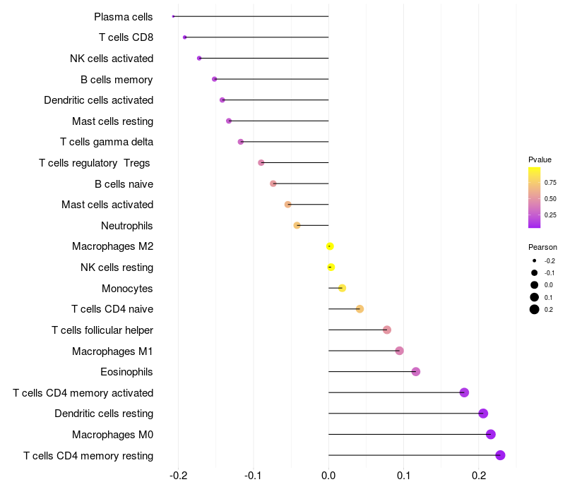 Lollipop of ALG13 expression and immune infiltrating cell level correlation result in HBV+ samples