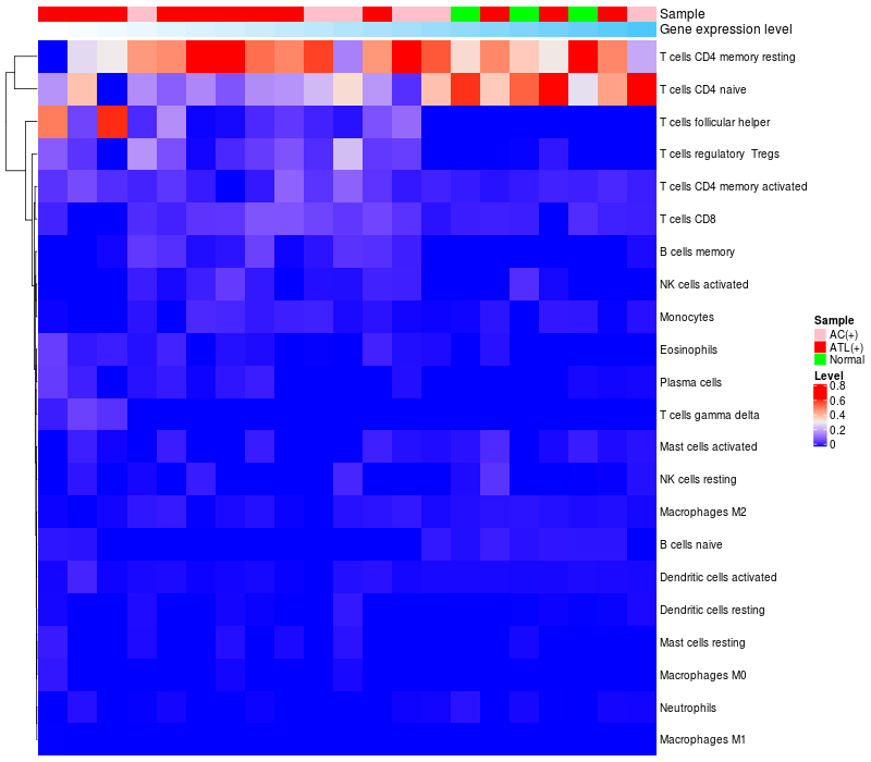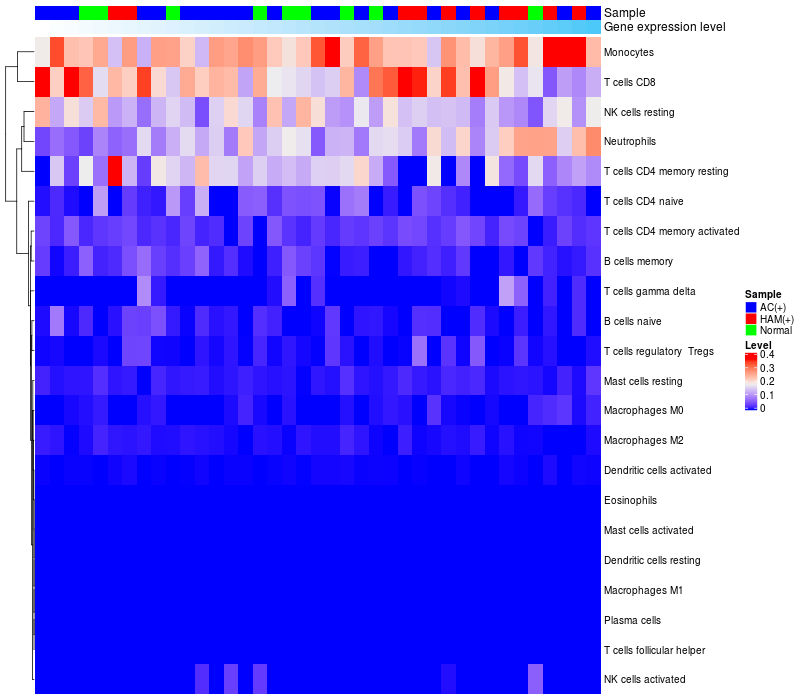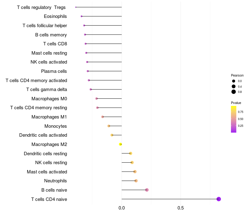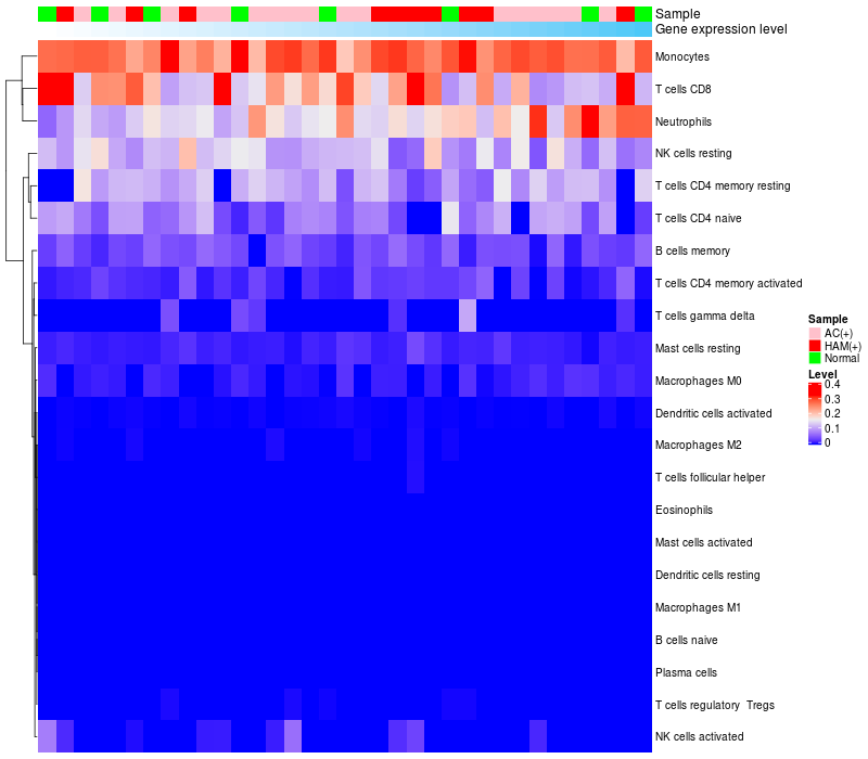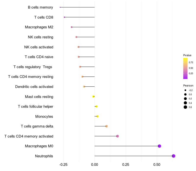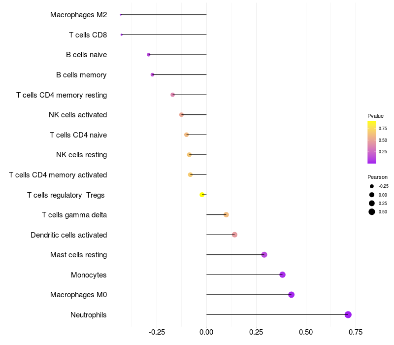 Relationship between gene expression and immune infiltrating cell level