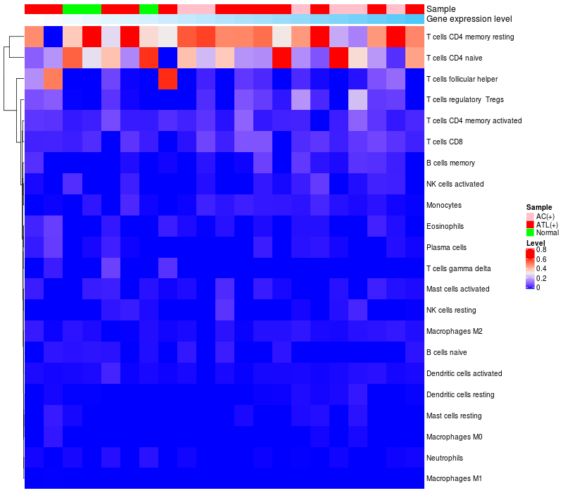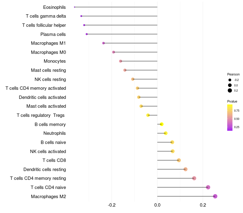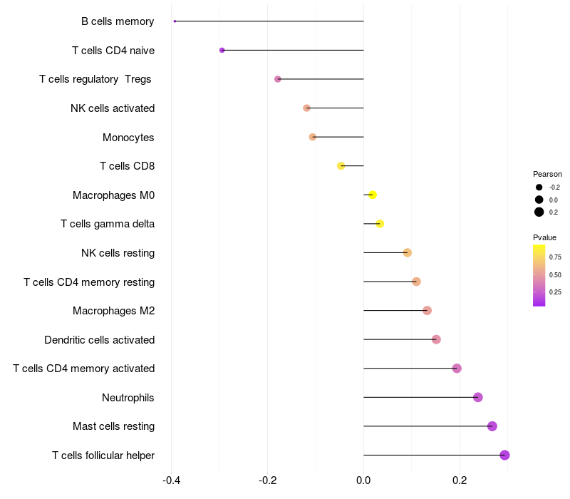 Lollipop of AMOTL2 expression and immune infiltrating cell level correlation result in HTLV1+ samples
