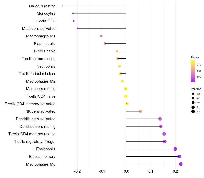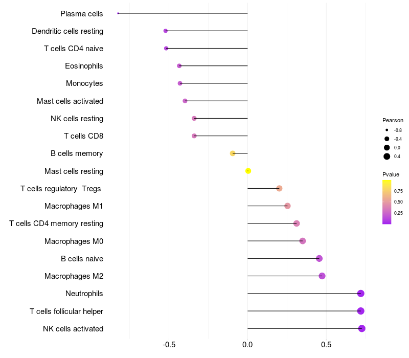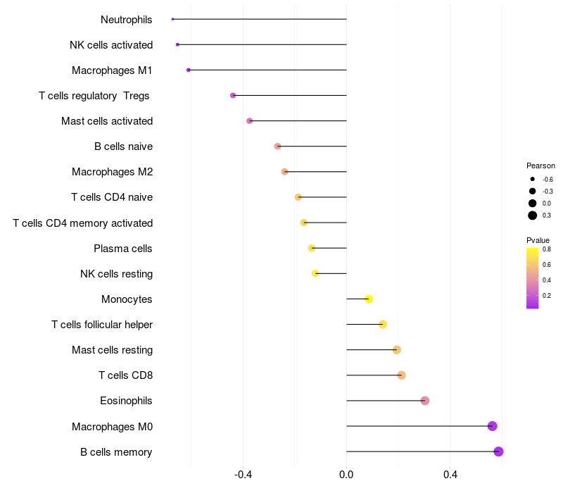 Lollipop of ANAPC1 expression and immune infiltrating cell level correlation result in HBV+ Liver cirrhosis samples
