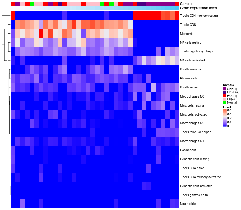 Liver hepatocellular carcinoma HCV (HBV+)(86), Liver hepatocellular carcinoma HCV (HBV-)(19), Liver hepatocellular carcinoma (HBV+)(209), Liver hepatocellular carcinoma (HBV+)(60), Paracancerous HCV (HBV+)(4), Paracancerous (HBV-)(28), Paracancerous (HBV+)(18) |