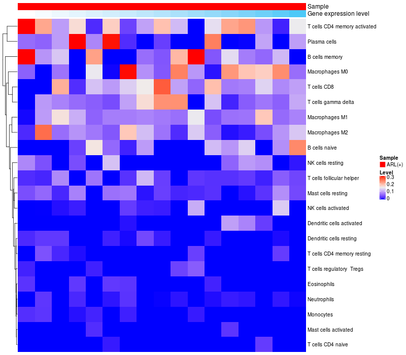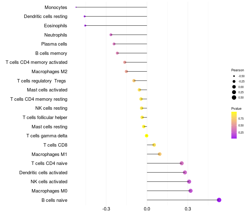 Relationship between gene expression and immune infiltrating cell level