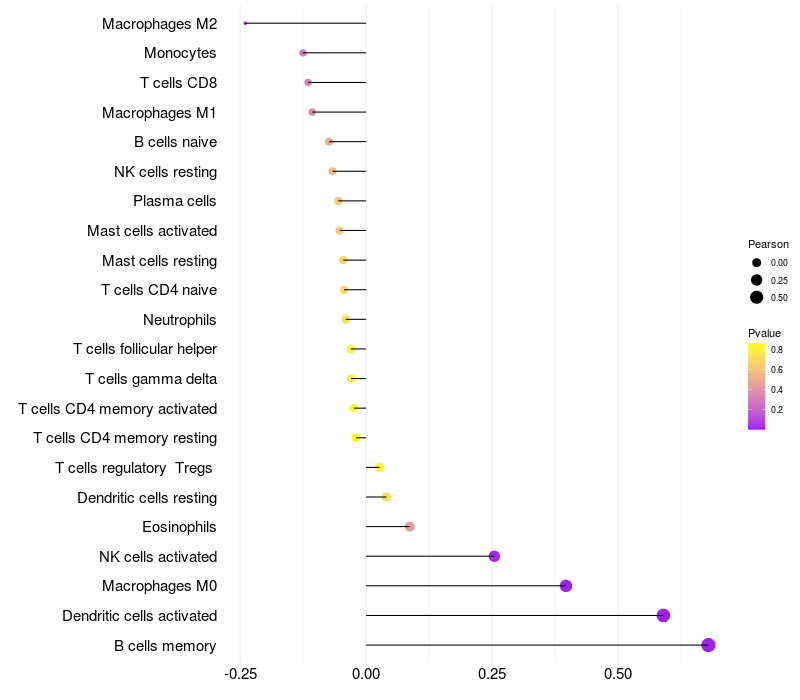 Lollipop of ANK1 expression and immune infiltrating cell level correlation result in HBV+ samples