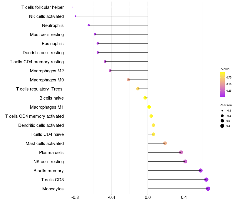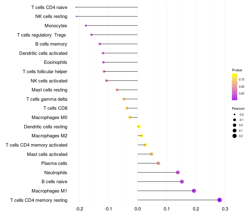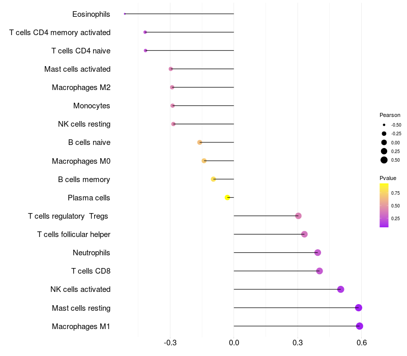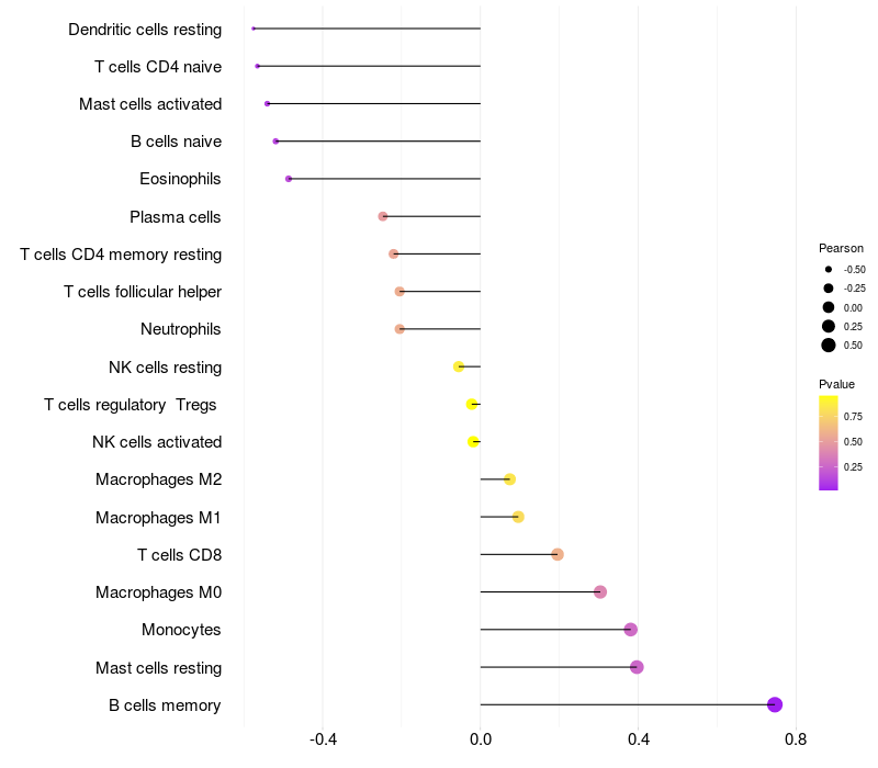 Lollipop of ANKRD12 expression and immune infiltrating cell level correlation result in HBV+ Liver cirrhosis samples