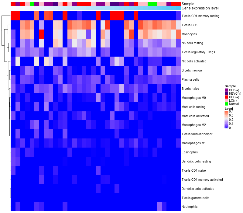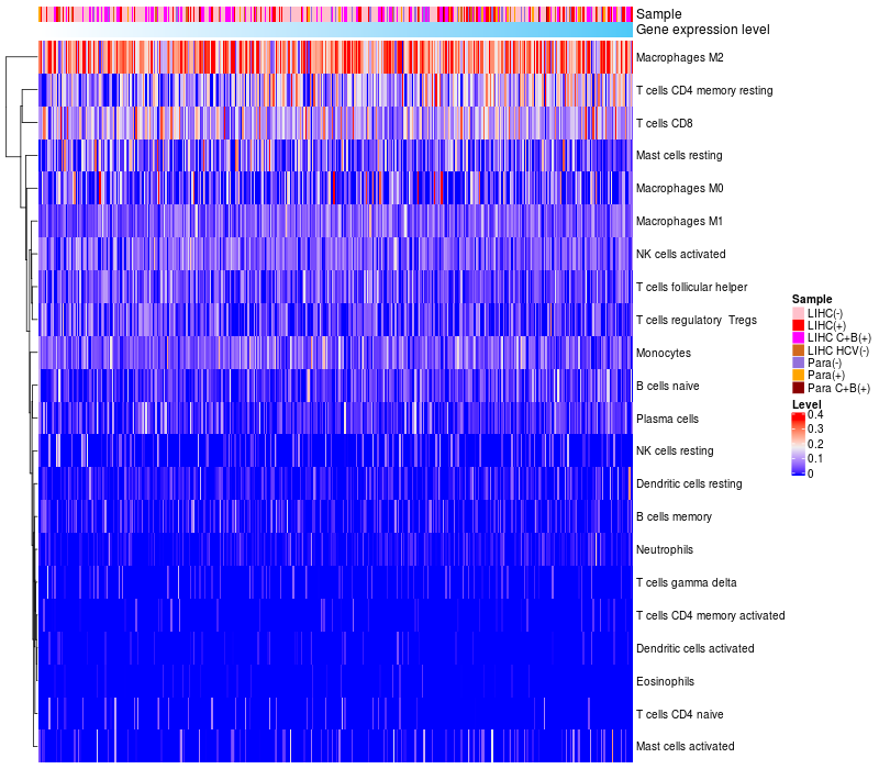 Liver hepatocellular carcinoma HCV (HBV+)(86), Liver hepatocellular carcinoma HCV (HBV-)(19), Liver hepatocellular carcinoma (HBV+)(209), Liver hepatocellular carcinoma (HBV+)(60), Paracancerous HCV (HBV+)(4), Paracancerous (HBV-)(28), Paracancerous (HBV+)(18) |