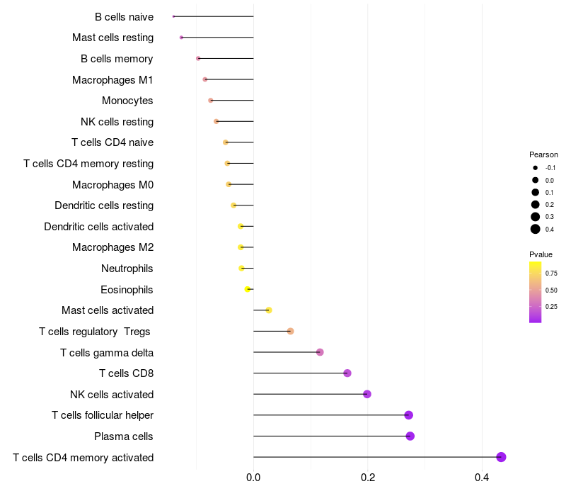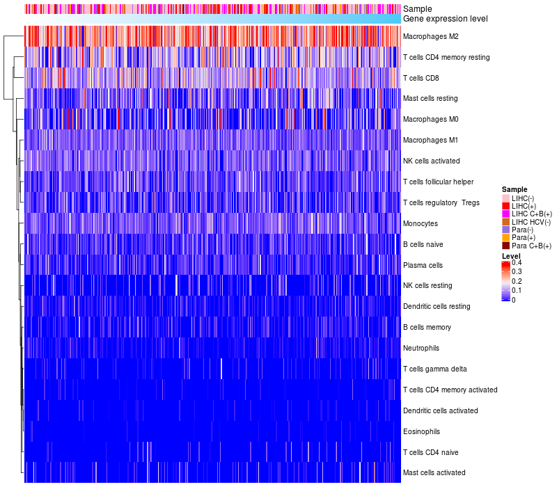 Relationship between gene expression and immune infiltrating cell level