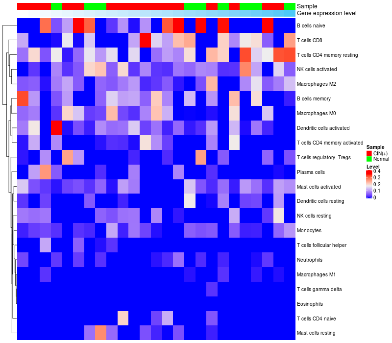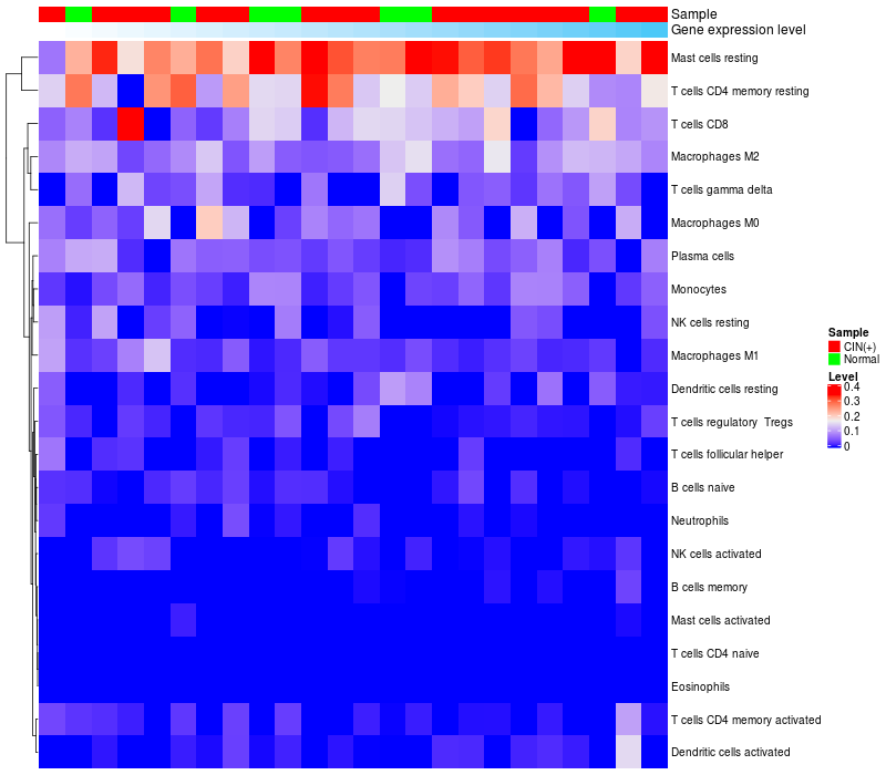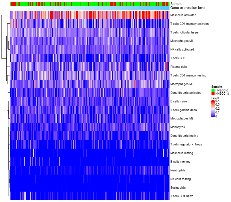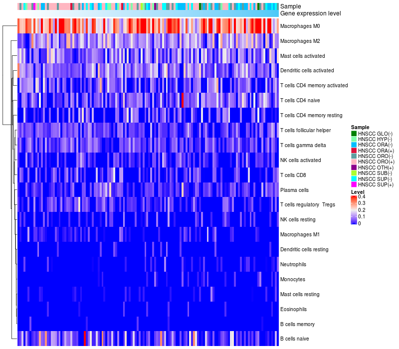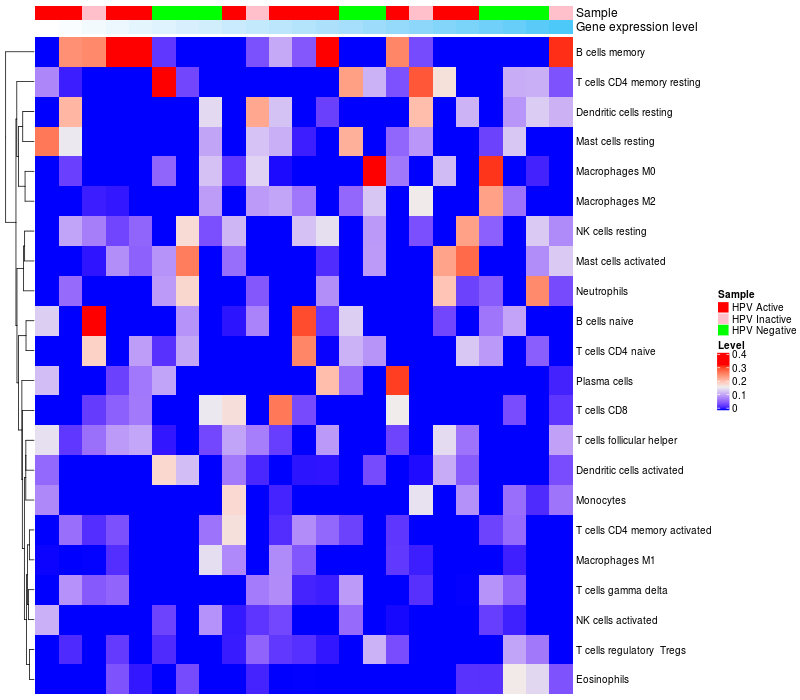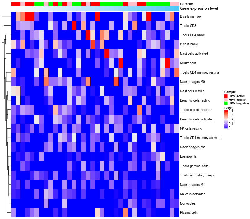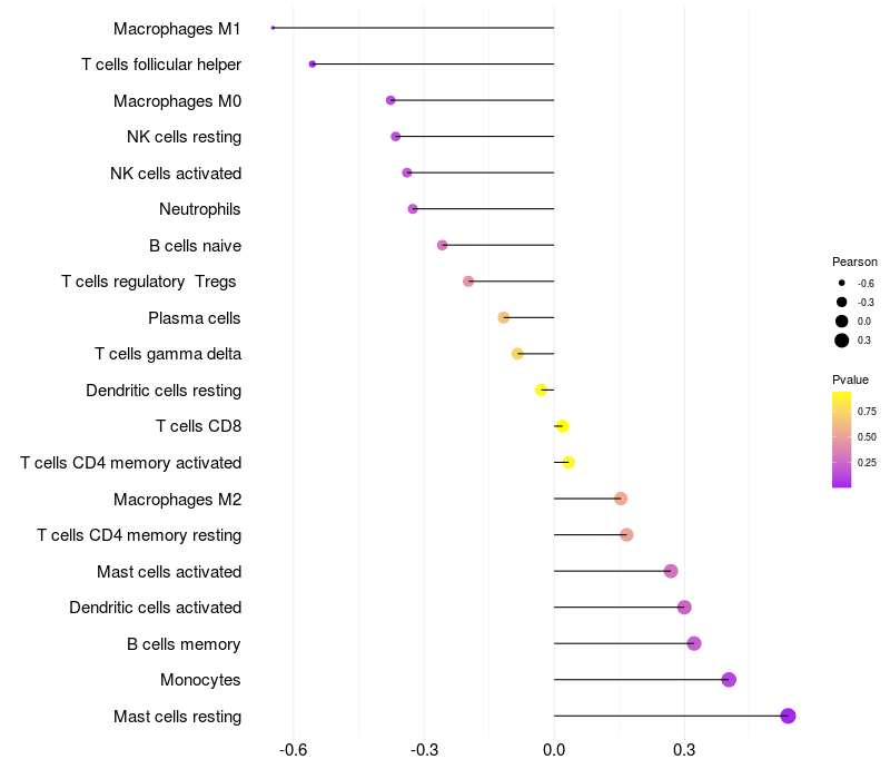Lollipop of ANO10 expression and immune infiltrating cell level correlation result in HPV+ samples