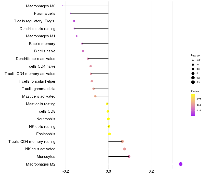 Lollipop of ANO3 expression and immune infiltrating cell level correlation result in HBV+ samples