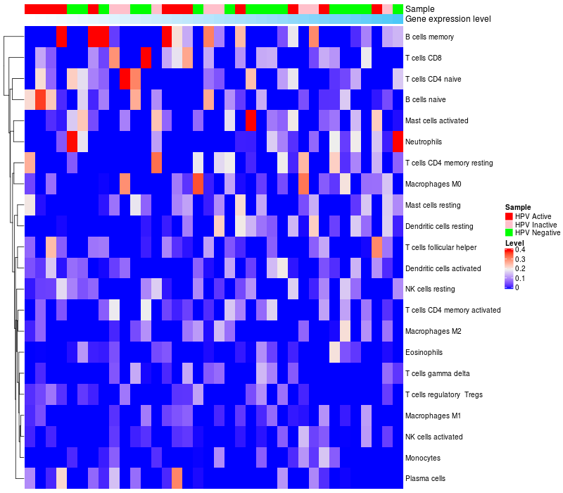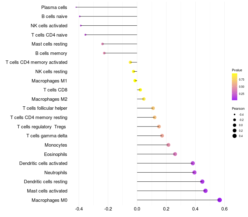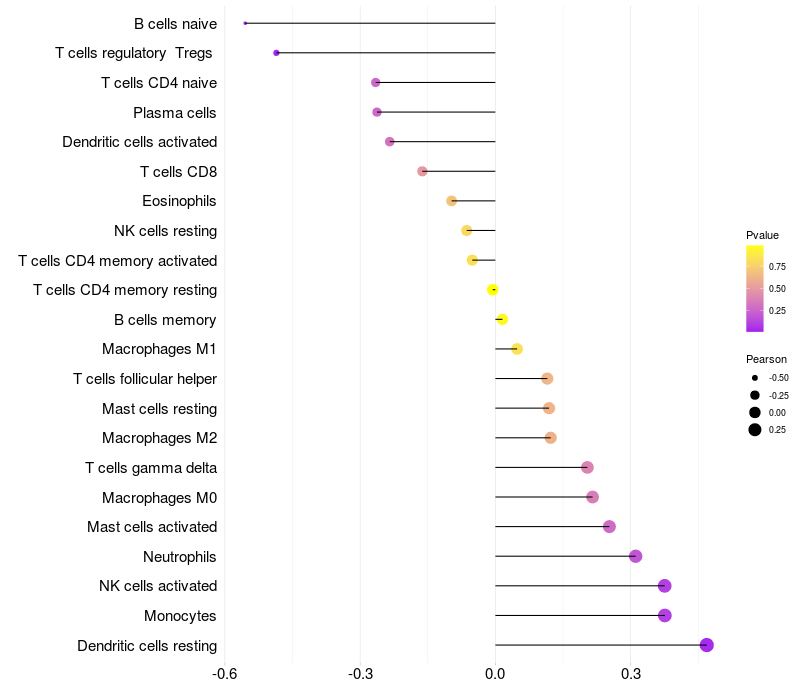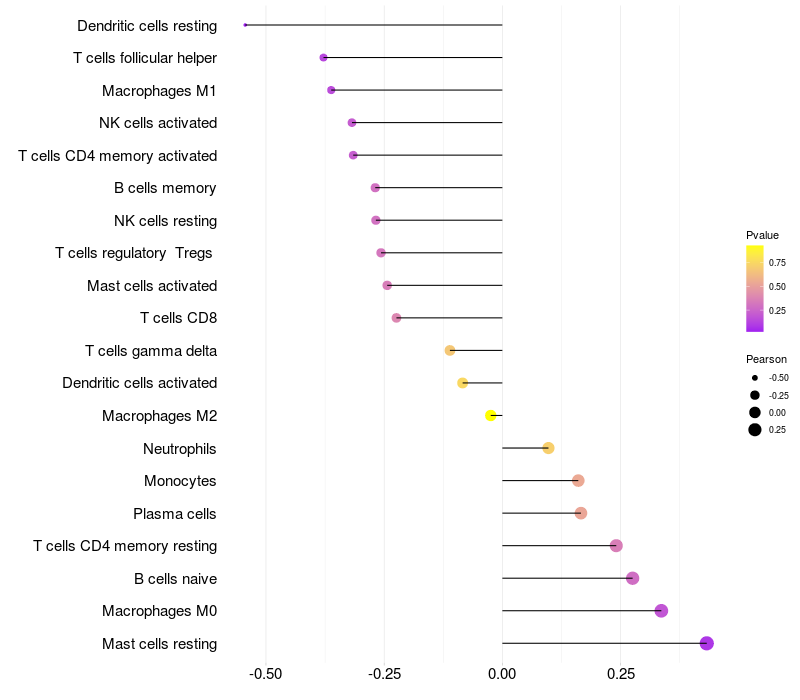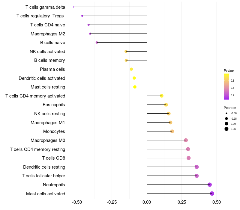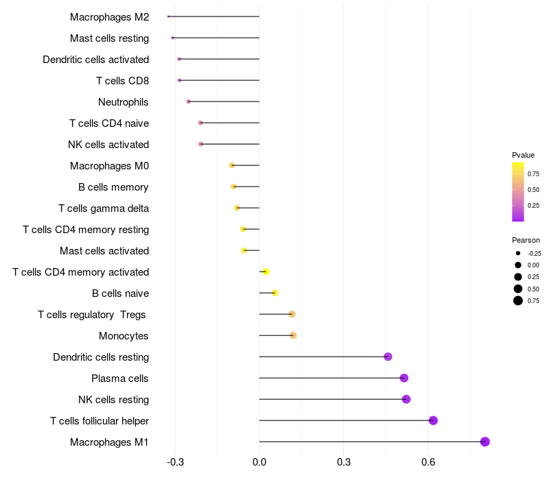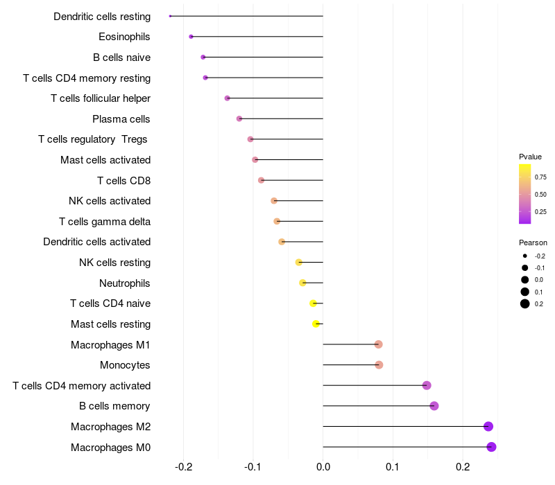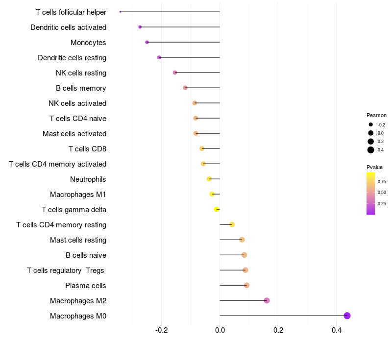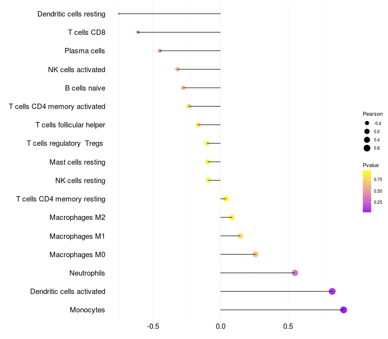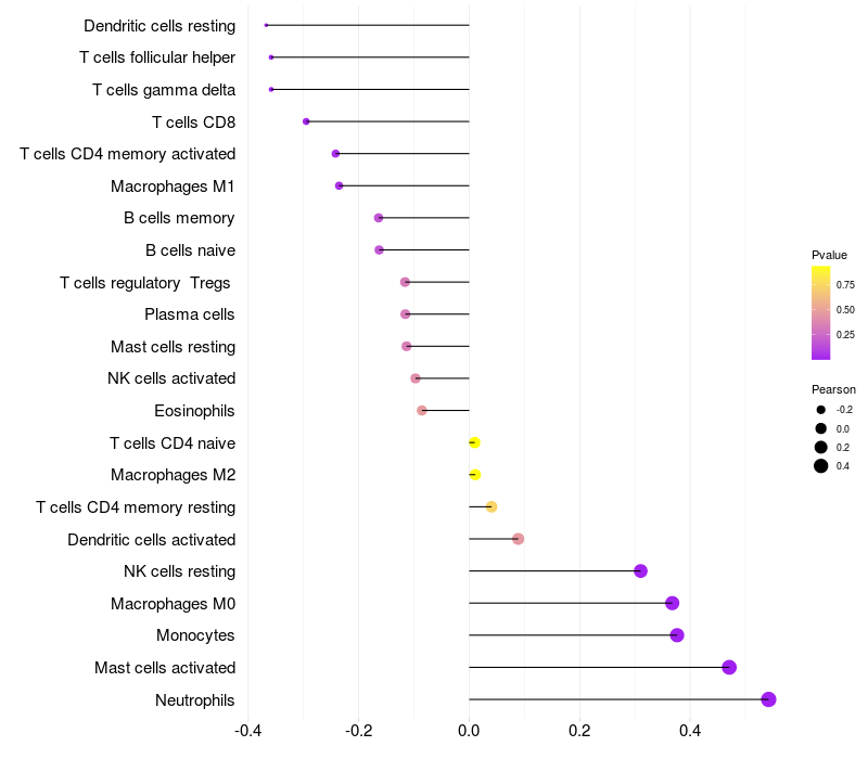 Lollipop of ANPEP expression and immune infiltrating cell level correlation result in HPV+ samples