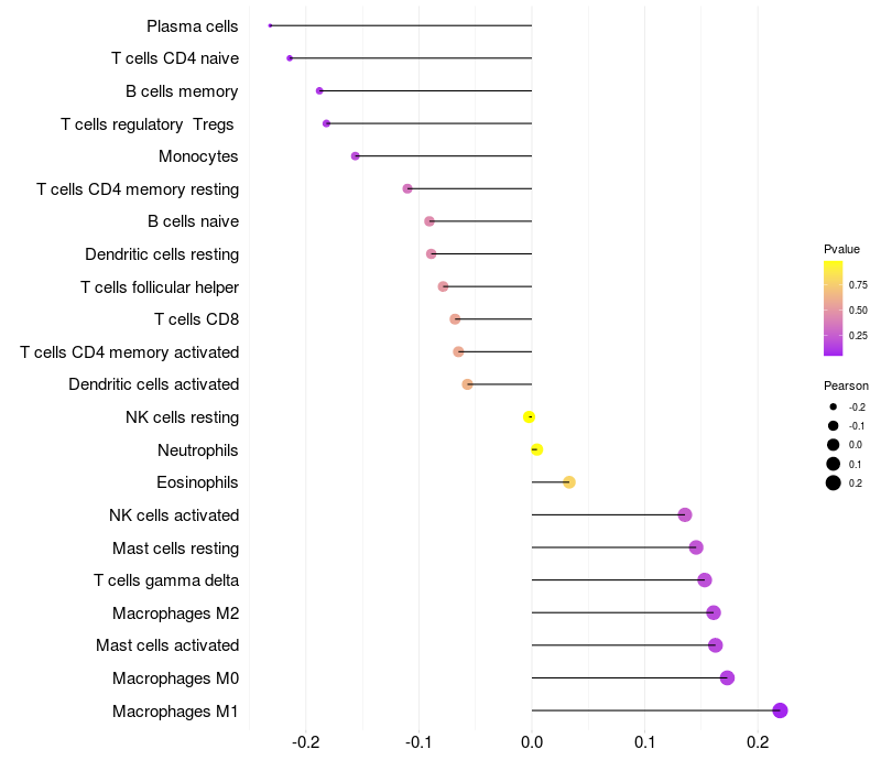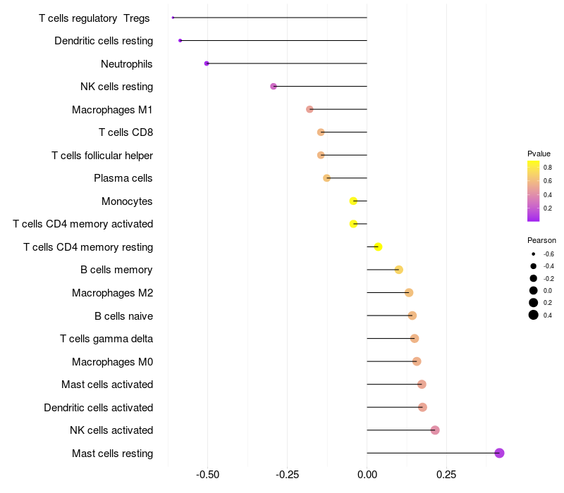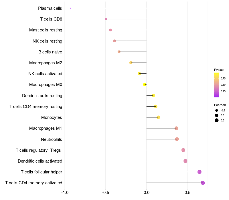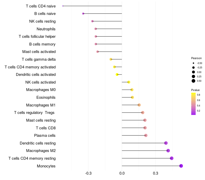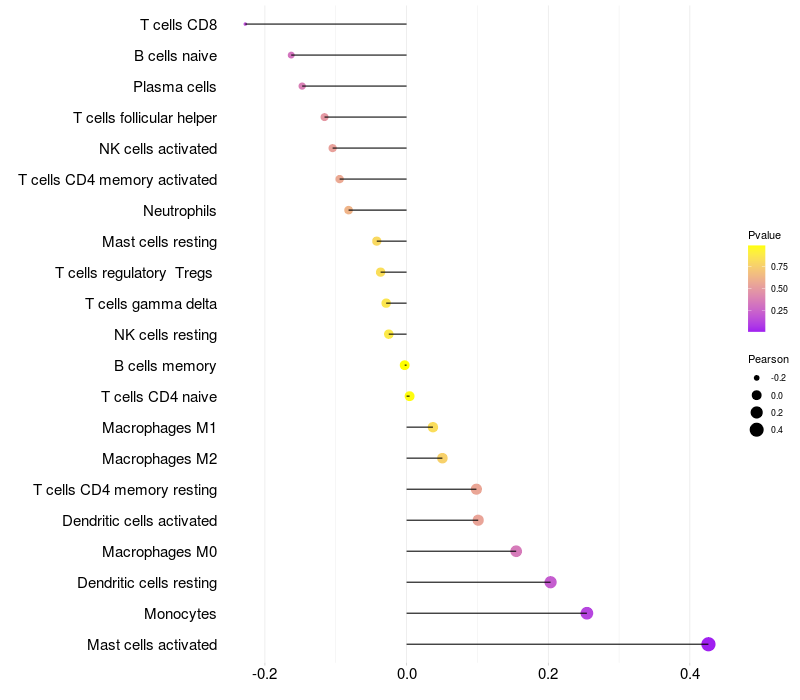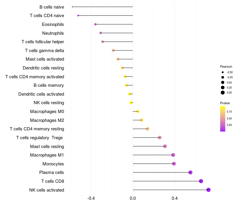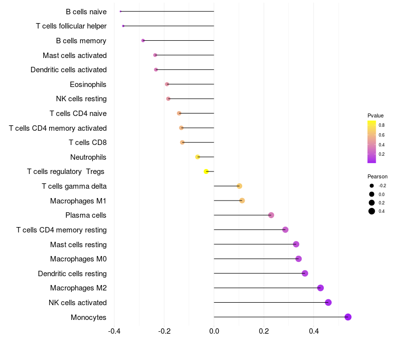 Lollipop of ANXA13 expression and immune infiltrating cell level correlation result in HPV+ samples