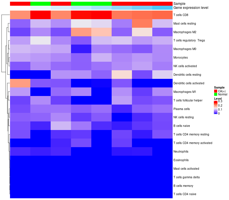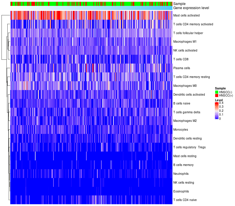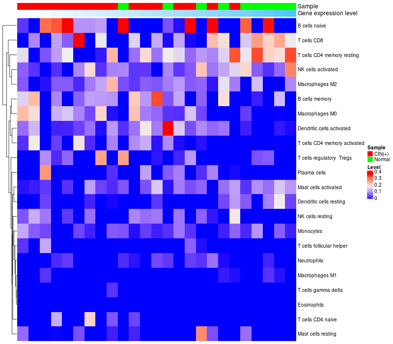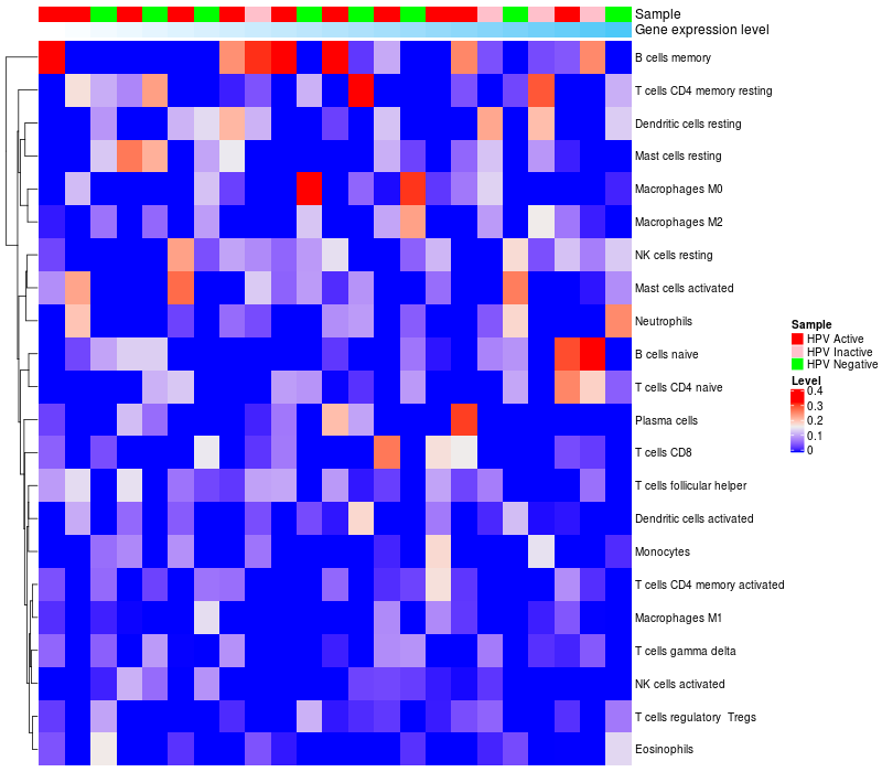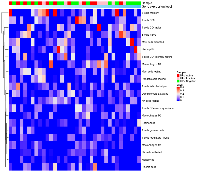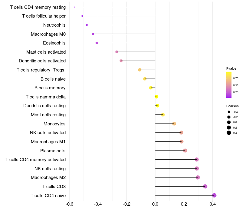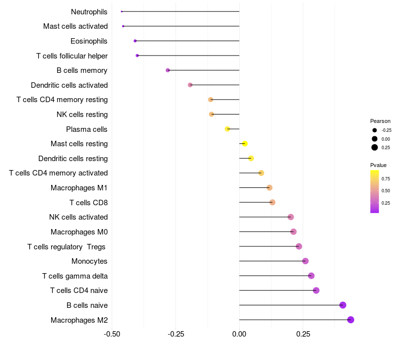 Lollipop of APLF expression and immune infiltrating cell level correlation result in HPV+ samples