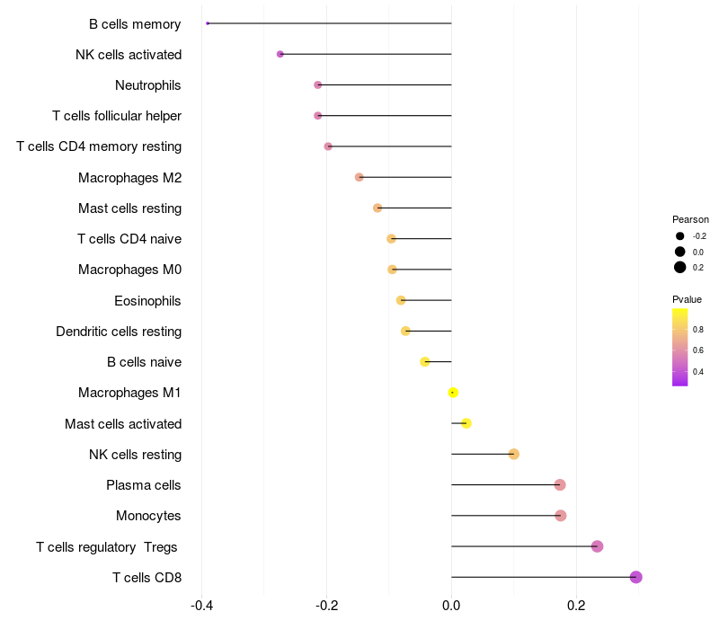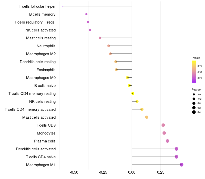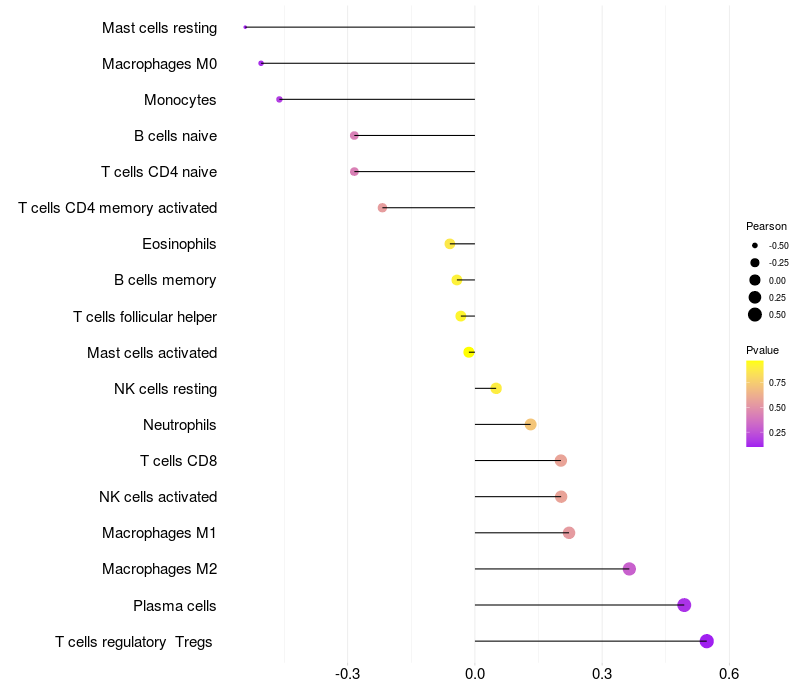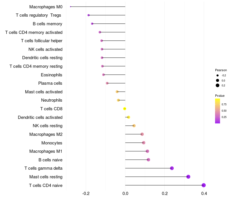 Lollipop of AQP11 expression and immune infiltrating cell level correlation result in HBV+ samples