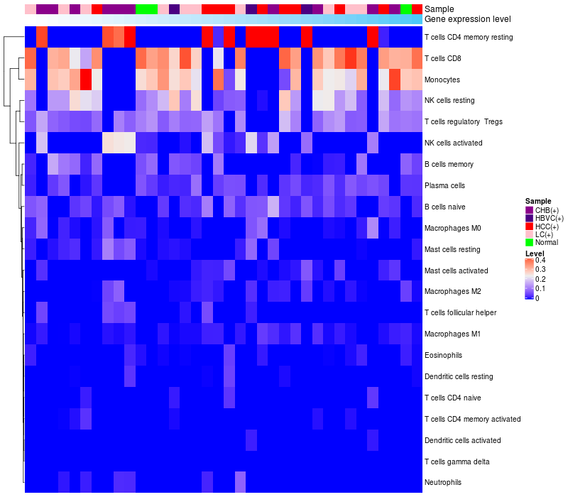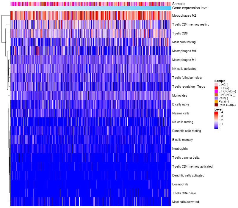 Liver hepatocellular carcinoma HCV (HBV+)(86), Liver hepatocellular carcinoma HCV (HBV-)(19), Liver hepatocellular carcinoma (HBV+)(209), Liver hepatocellular carcinoma (HBV+)(60), Paracancerous HCV (HBV+)(4), Paracancerous (HBV-)(28), Paracancerous (HBV+)(18) |
