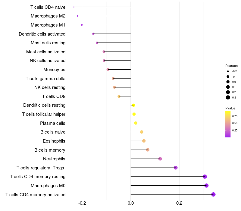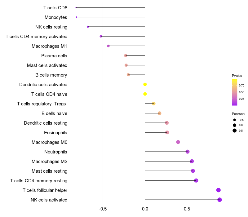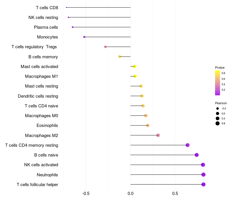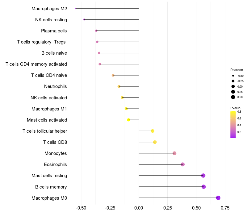Lollipop of ARHGAP18 expression and immune infiltrating cell level correlation result in HBV+ Liver cirrhosis samples
