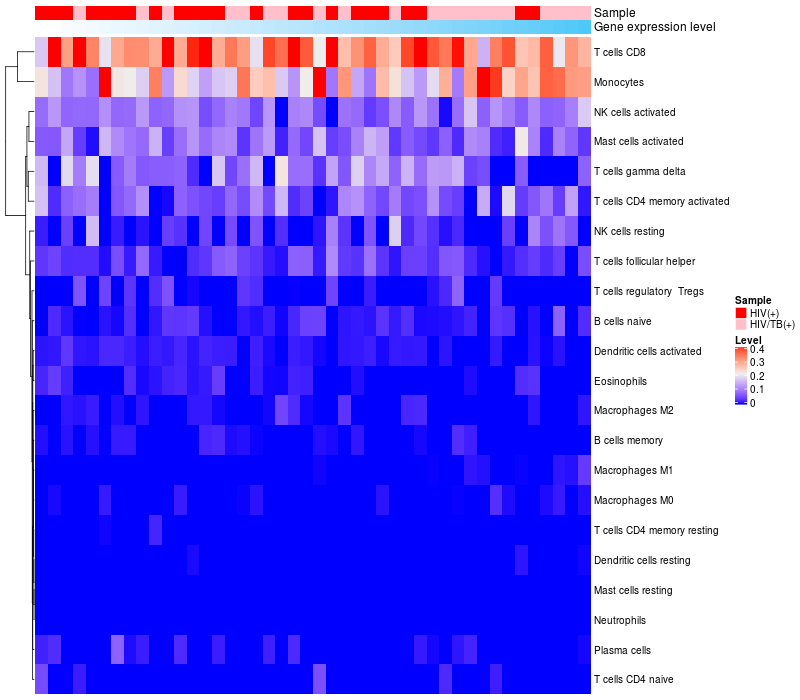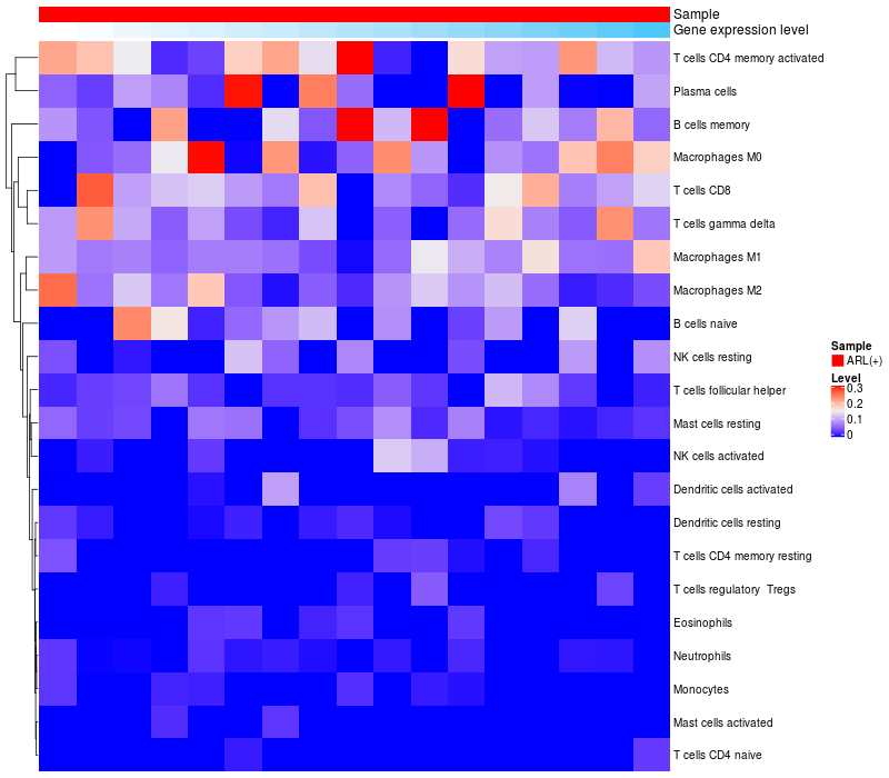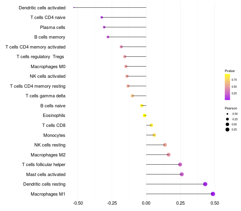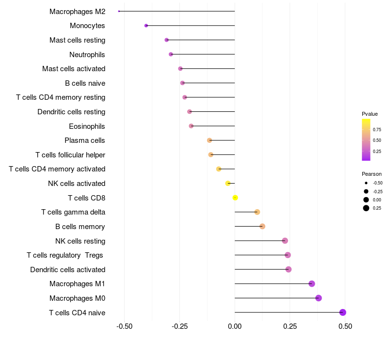 Relationship between gene expression and immune infiltrating cell level