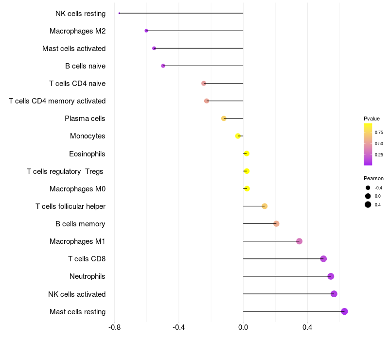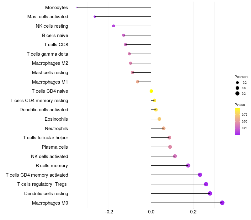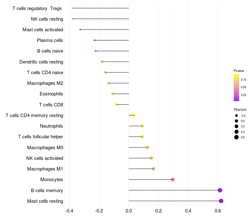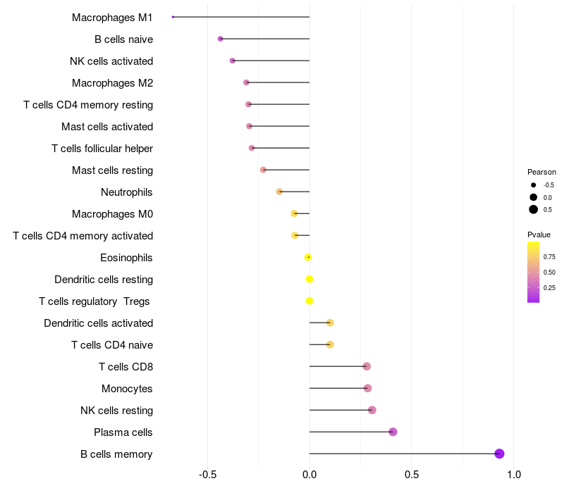 Lollipop of ARHGEF11 expression and immune infiltrating cell level correlation result in HBV+ Liver cirrhosis samples