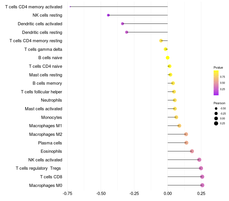 Relationship between gene expression and immune infiltrating cell level