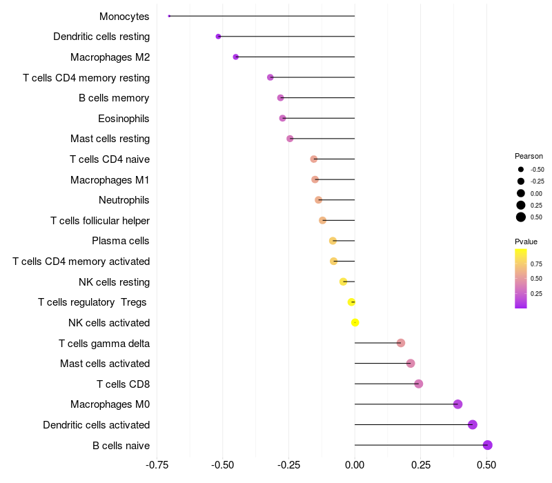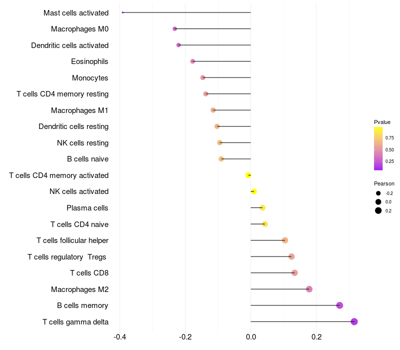 Relationship between gene expression and immune infiltrating cell level