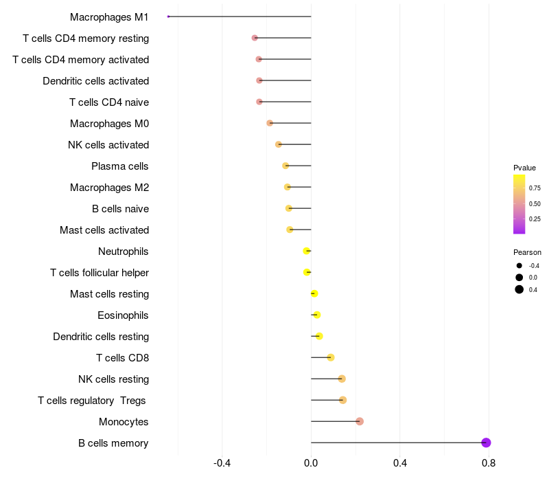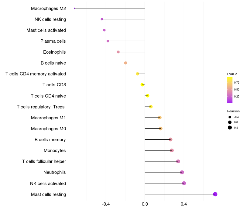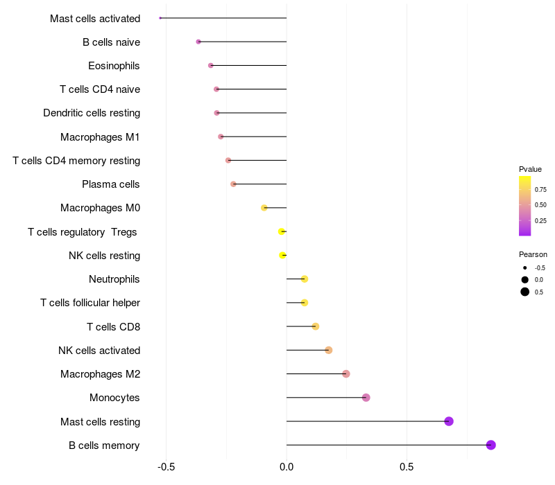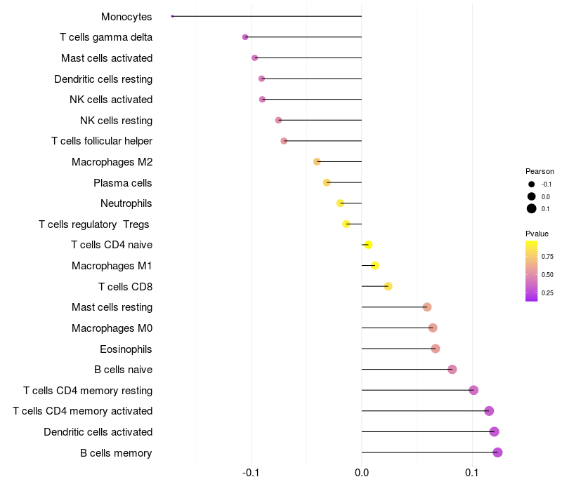 Lollipop of ARID1A expression and immune infiltrating cell level correlation result in HBV+ Liver cirrhosis samples
