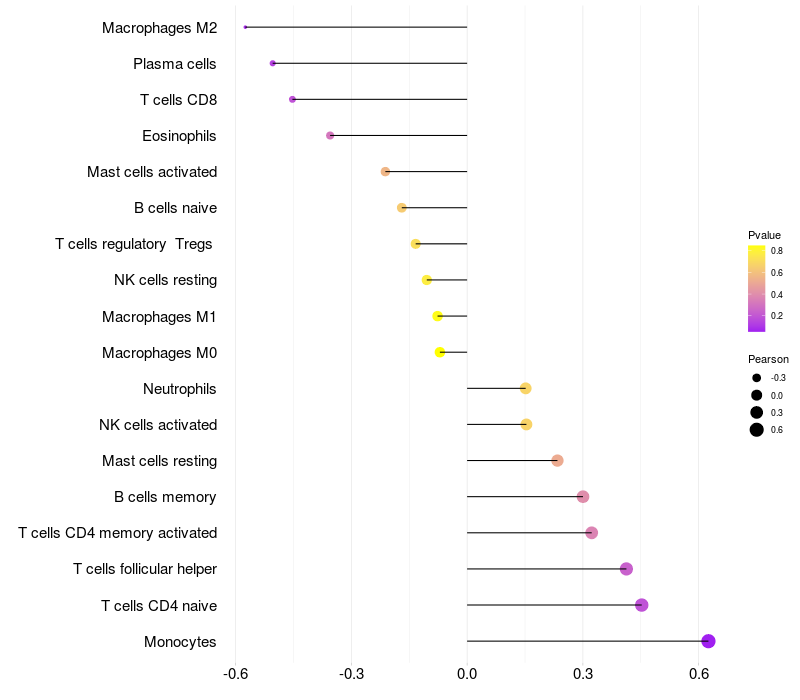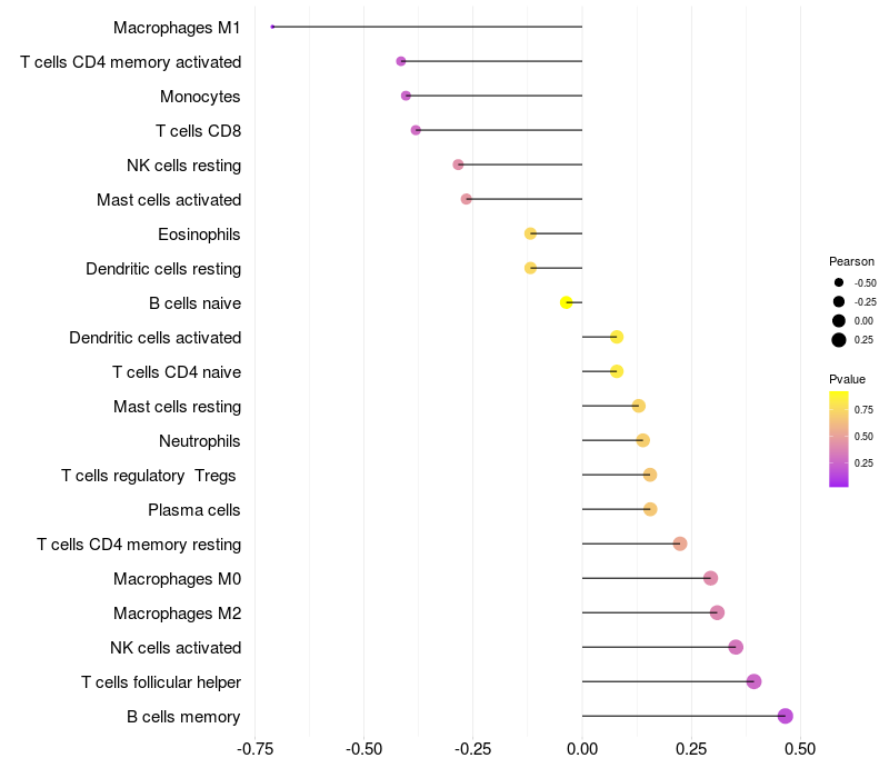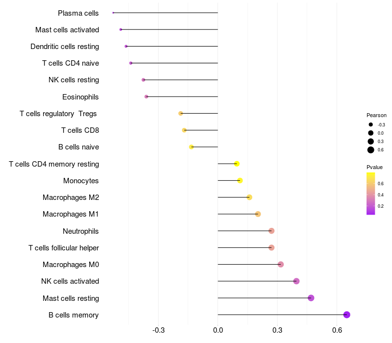 Lollipop of ARID1B expression and immune infiltrating cell level correlation result in HBV+ Liver cirrhosis samples
