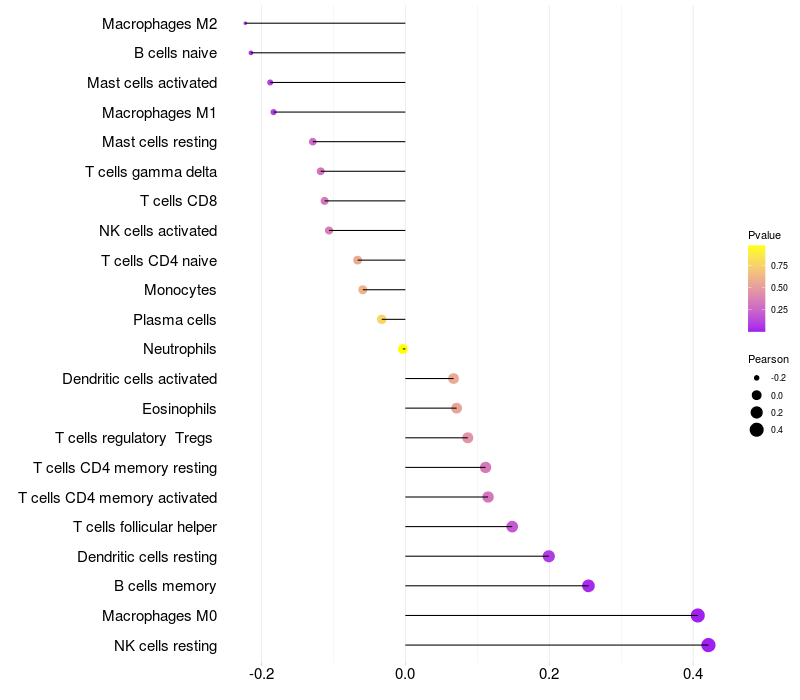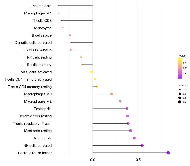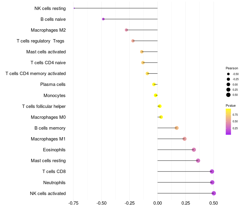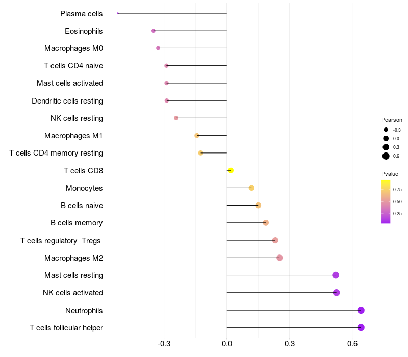 Lollipop of ASF1B expression and immune infiltrating cell level correlation result in HBV+ samples